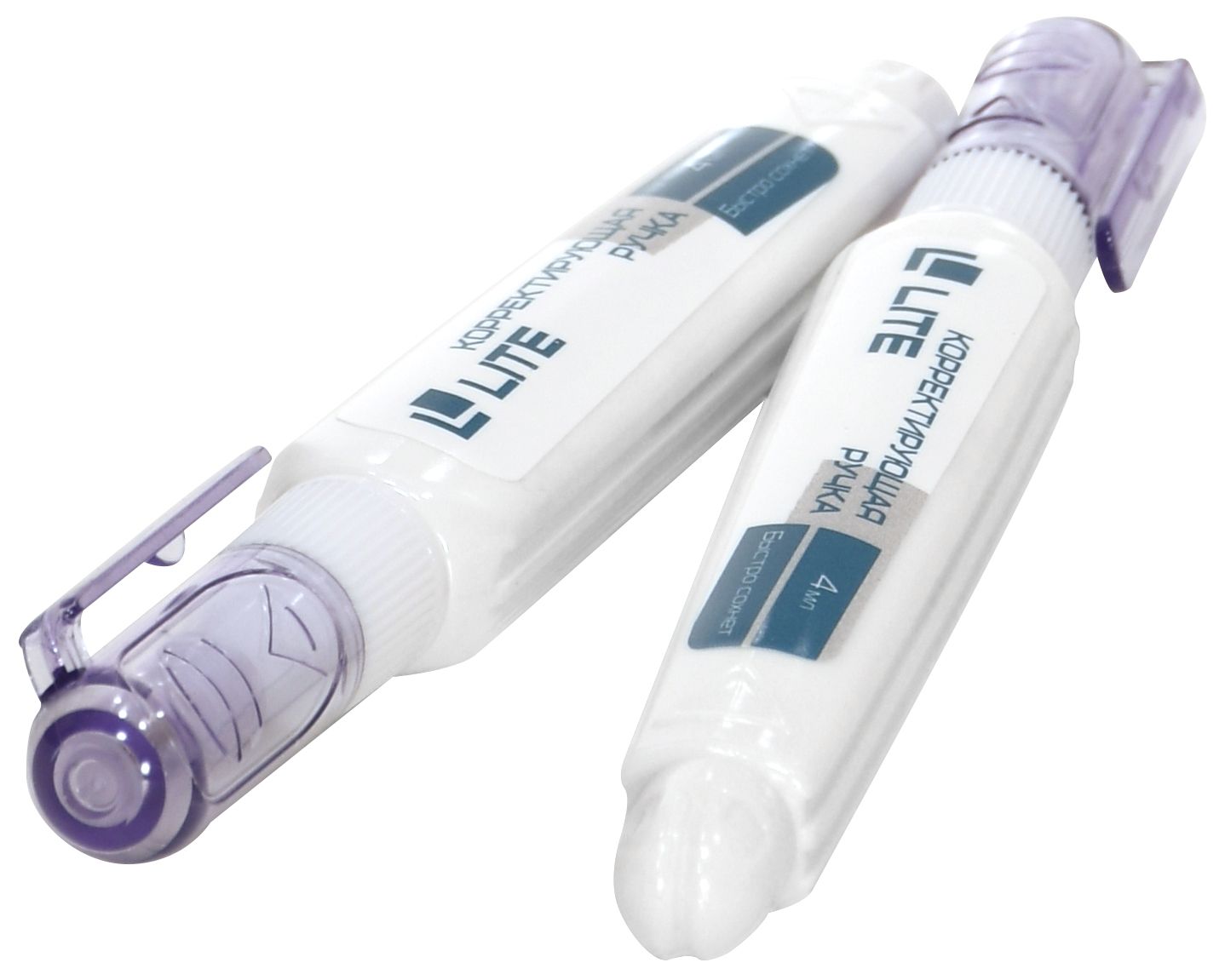Механизм корректора: маталлический наконечник Объем, мл: 4 Цвет корпуса: белый Упаковка: картонный дисплей Основное вещество корректора (состав): быстросохнущая Торговая марка: LITE Мин. партия и варианты упаковок: 1 / 12 / 1200 Корректирующая ручка LITE 4 мл, металлический наконечник