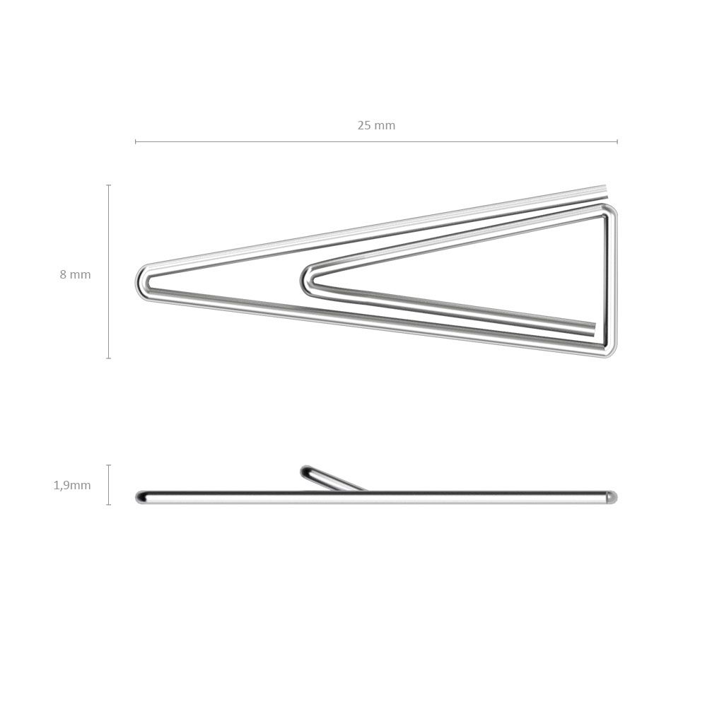 Цвет: серебро Количество в упаковке, шт: 100 Материал: металл Размер, мм: 25 Упаковка: картонная упаковка Тип скрепок: треугольные Мин. партия и варианты упаковок: 1 / 24 / 144 -