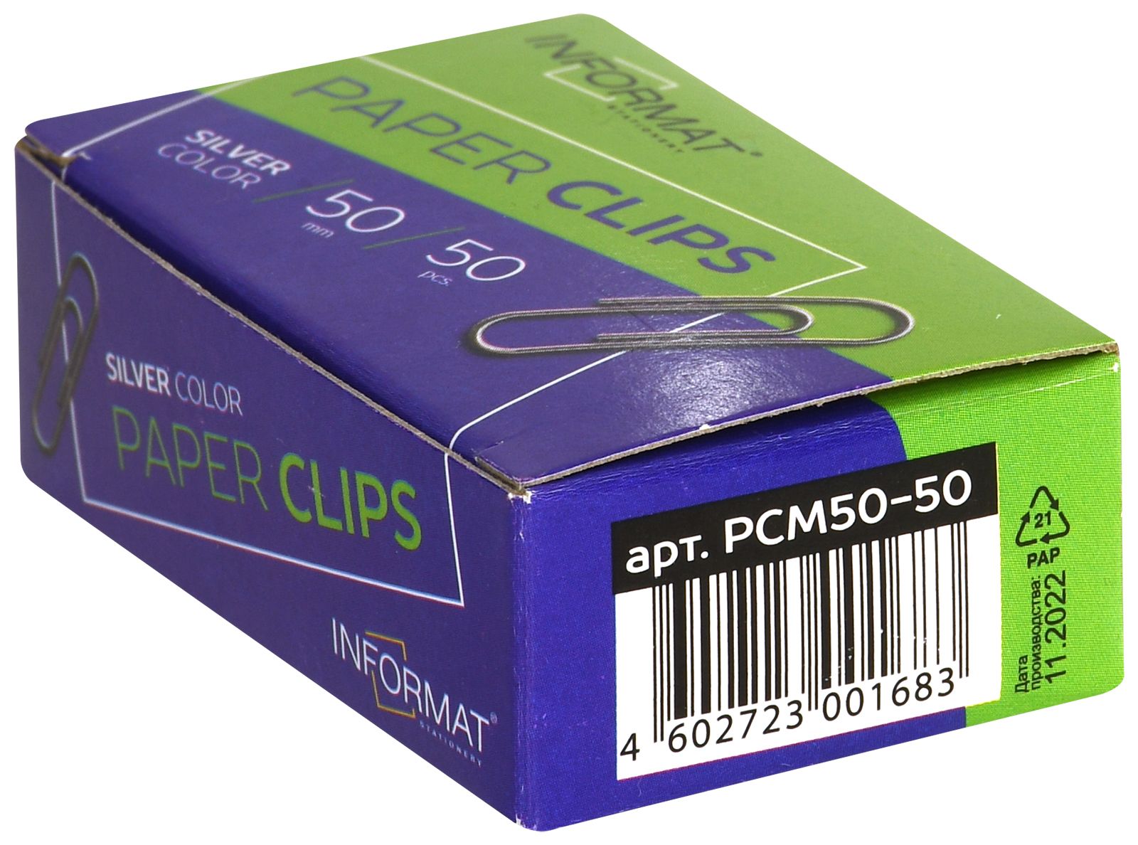 Цвет: серебро Количество в упаковке, шт: 50 Материал: металл Размер, мм: 50 Упаковка: картонная упаковка Тип скрепок: классические Мин. партия и варианты упаковок: 1 / 200 Скрепки INFORMAT 50 мм 50 шт., классические, никелированные, картонная упаковка
