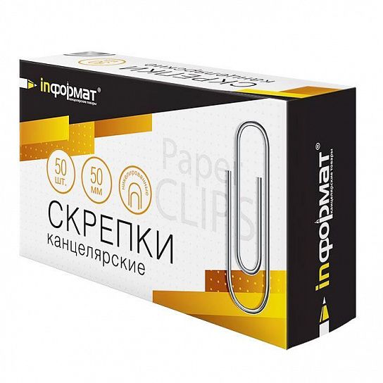 Цвет: серебро Количество в упаковке, шт: 50 Материал: металл Размер, мм: 50 Упаковка: картонная упаковка Тип скрепок: классические Мин. партия и варианты упаковок: 1 / 10 / 200 Скрепки INFORMAT 50 мм 50 шт., классические, металлические без покрытия, картонная упаковка