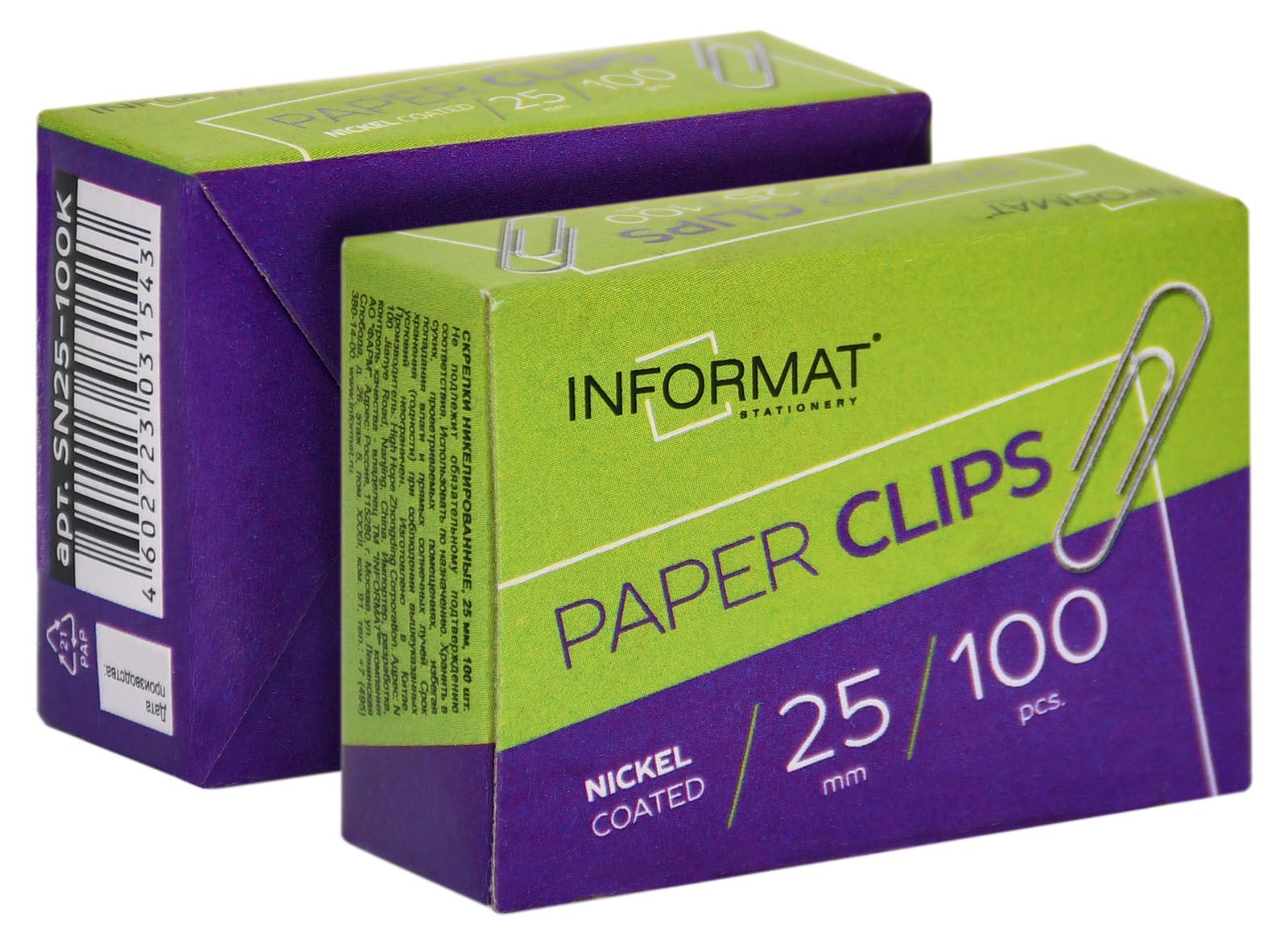 Цвет: серебро Количество в упаковке, шт: 100 Материал: металл Размер, мм: 25 Упаковка: картонная упаковка Тип скрепок: классические Мин. партия и варианты упаковок: 1 / 10 / 500 -