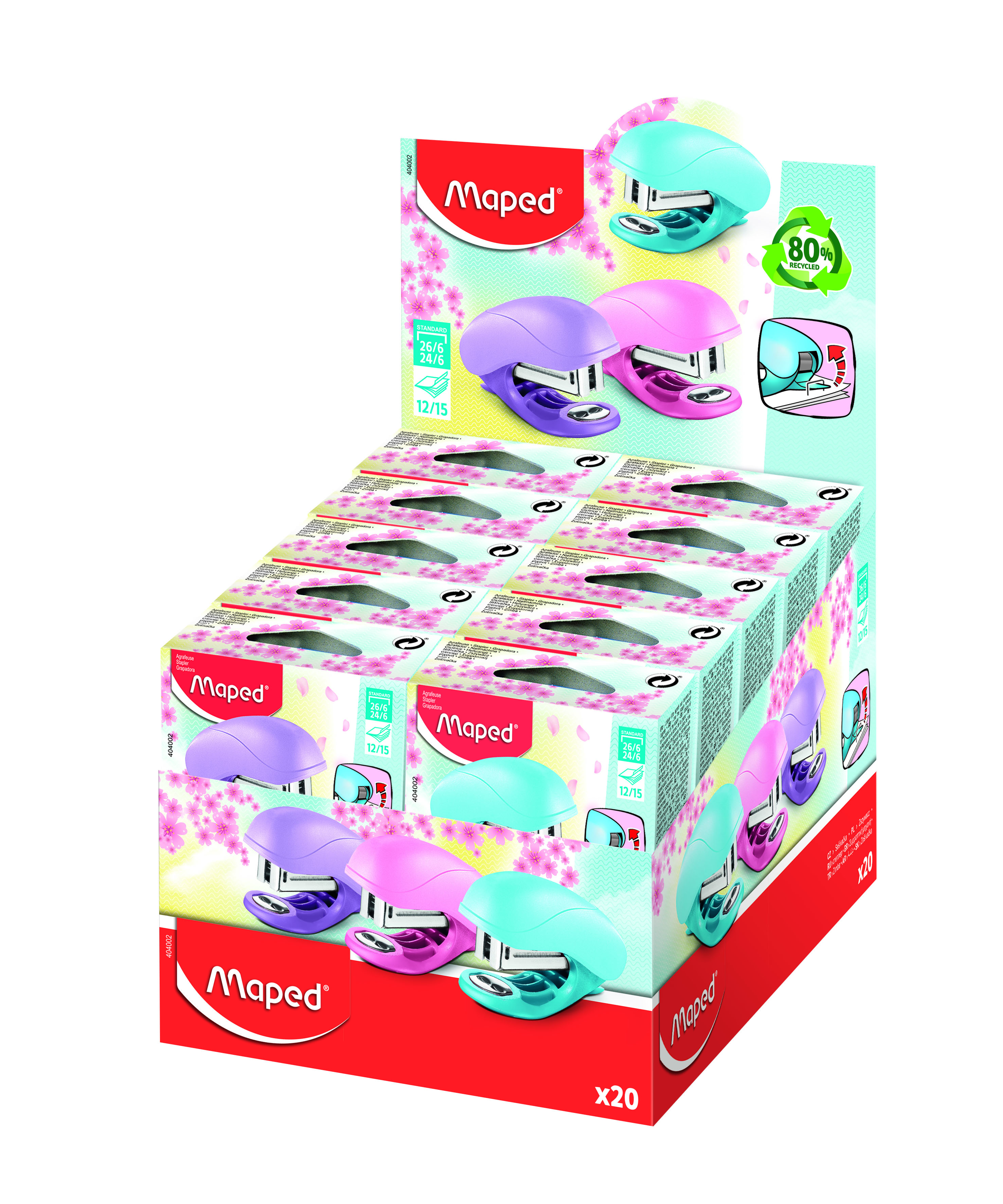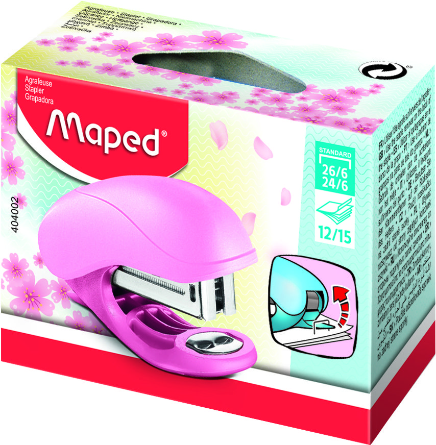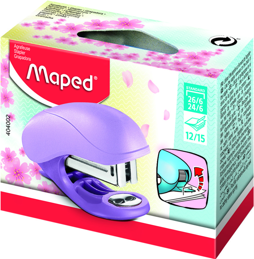 Материал: пластик Наличие антистеплера: Да Регулятор глубины закладки бумаги: Нет Размер скоб: 24/6, 26/6 Упаковка: блистер Вид сшивания степлером: закрытый Мин. партия и варианты упаковок: 1 / 20 / 200 Степлер MAPED VIVO PASTEL до 15 листов№ №24/6,26/6 пластик