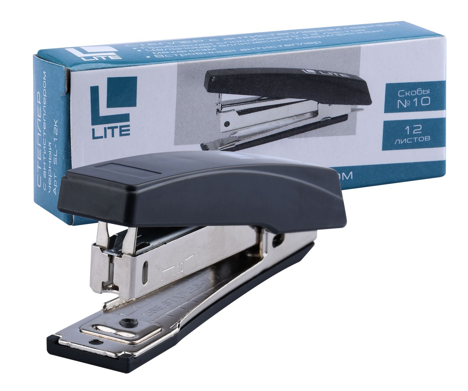 Цвет: черный Материал: пластик Наличие антистеплера: Да Регулятор глубины закладки бумаги: Нет Размер, см: 9,30 Высота, см: 3,80 Мин. партия и варианты упаковок: 1 / 12 / 240 Степлер LITE №10 до 12 листов, пластик, черный