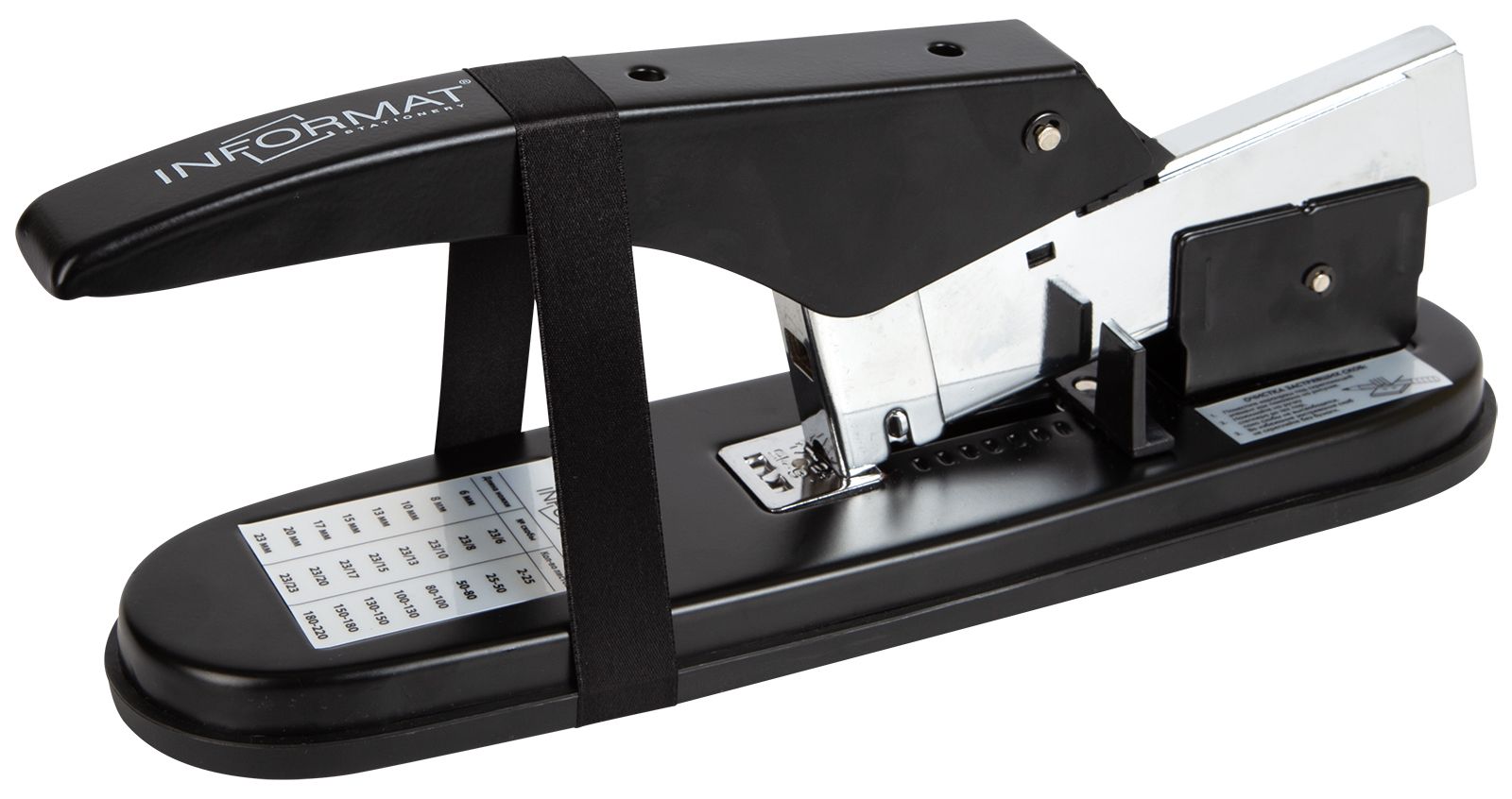 Цвет: черный Материал: металл Наличие антистеплера: Нет Регулятор глубины закладки бумаги: Да Размер, см: 29,80 Высота, см: 24,00 Мин. партия и варианты упаковок: 1 / 12 Степлер супермощный INFORMAT MAXIMUM №23/6-23 до 220 листов, металл, черный