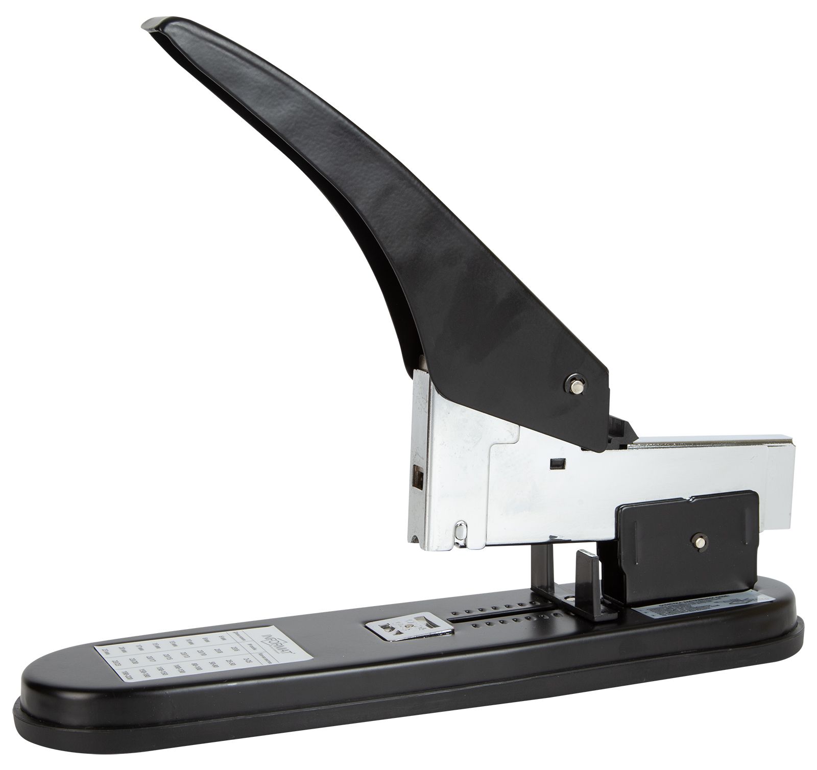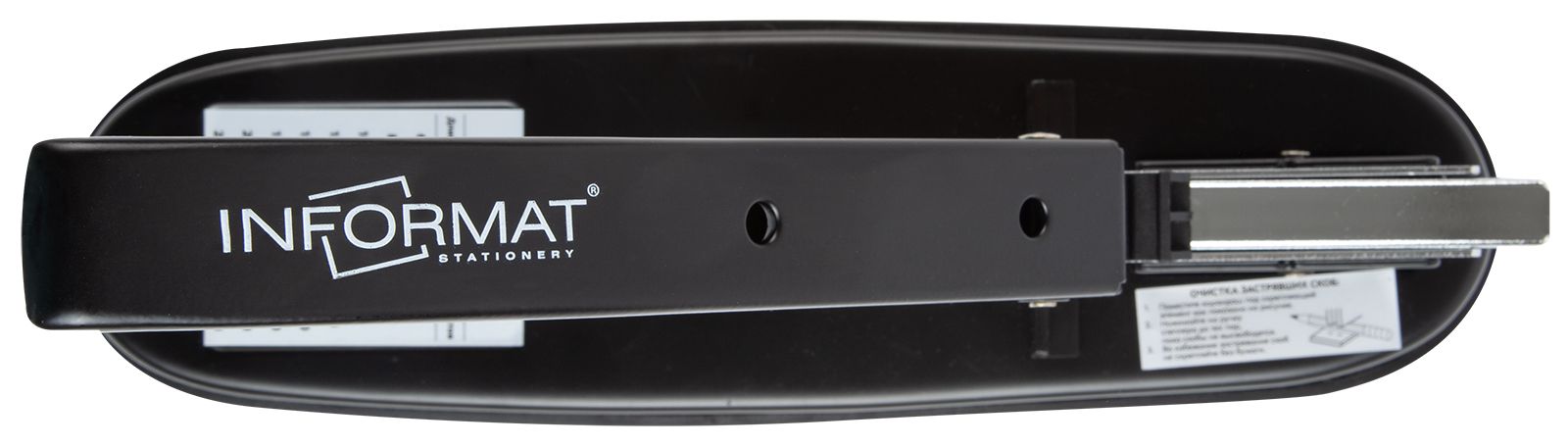 Цвет: черный Материал: металл Наличие антистеплера: Нет Регулятор глубины закладки бумаги: Да Размер, см: 29,80 Высота, см: 24,00 Мин. партия и варианты упаковок: 1 / 12 Степлер супермощный INFORMAT MAXIMUM №23/6-23 до 220 листов, металл, черный