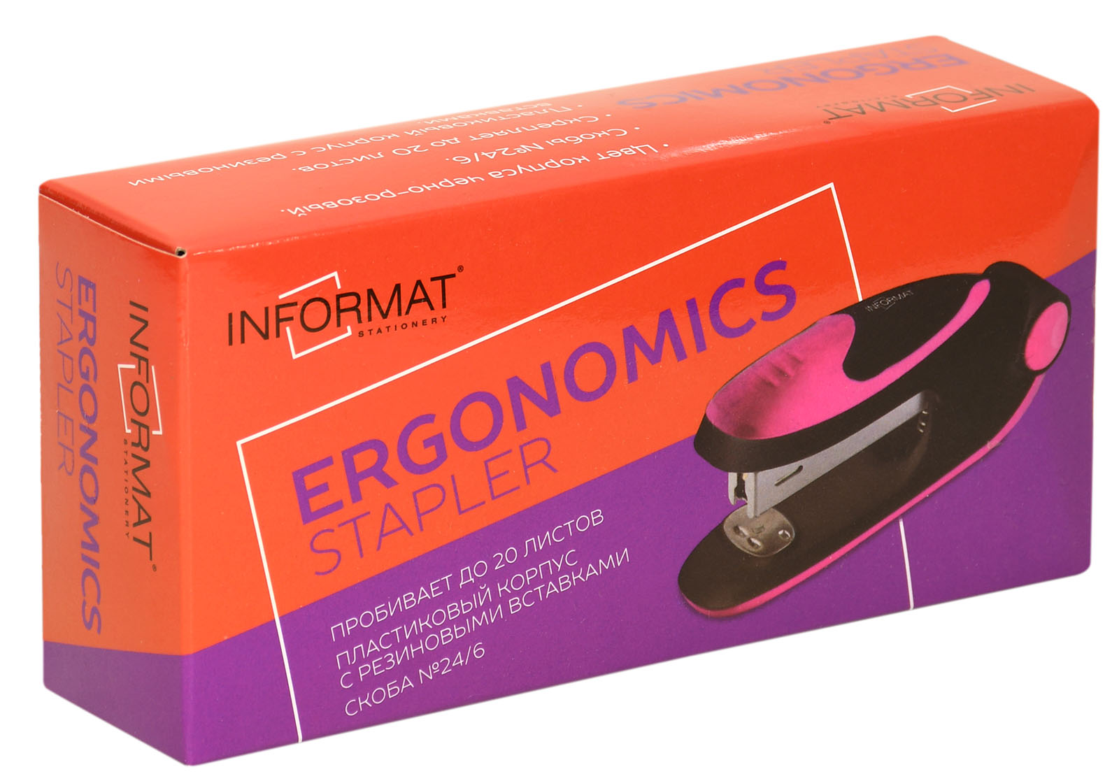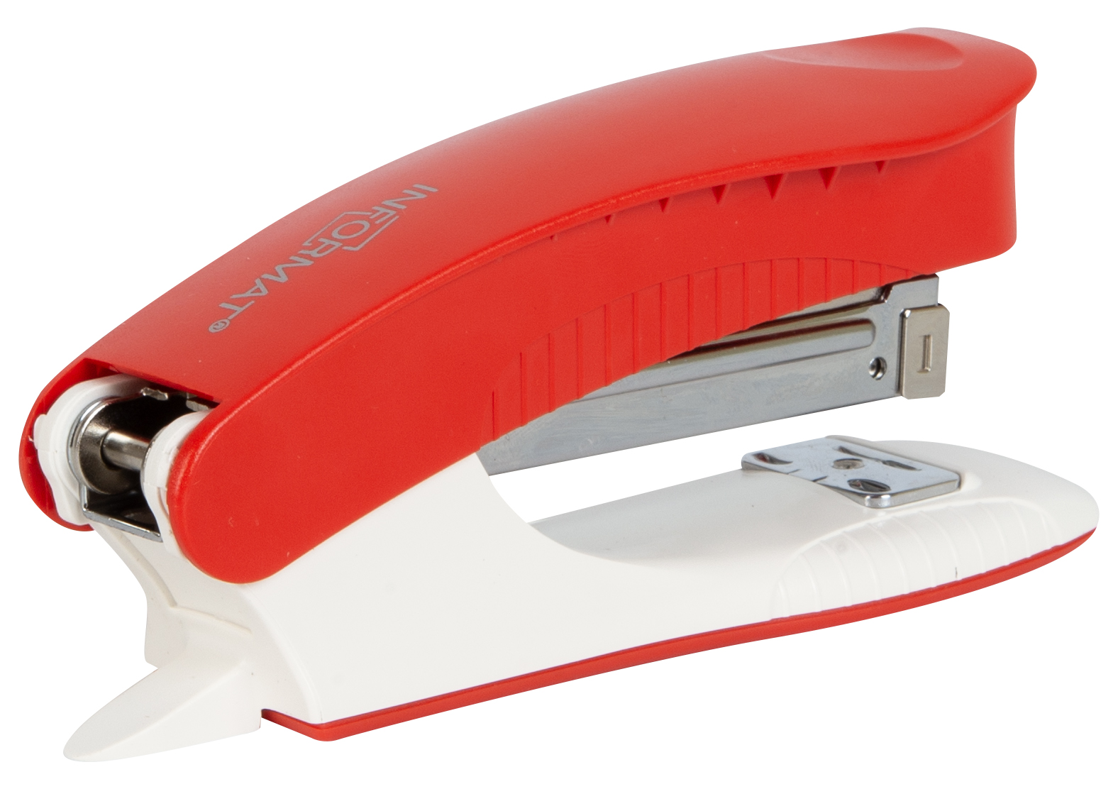 Цвет: красный Материал: пластик Наличие антистеплера: Да Регулятор глубины закладки бумаги: Нет Размер, см: 13,50 Высота, см: 5,70 Мин. партия и варианты упаковок: 1 / 10 / 60 / 120 Степлер INFORMAT ERGONOMICS №24/6 до 30 листов, пластик, красный