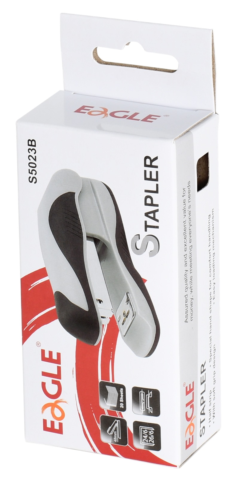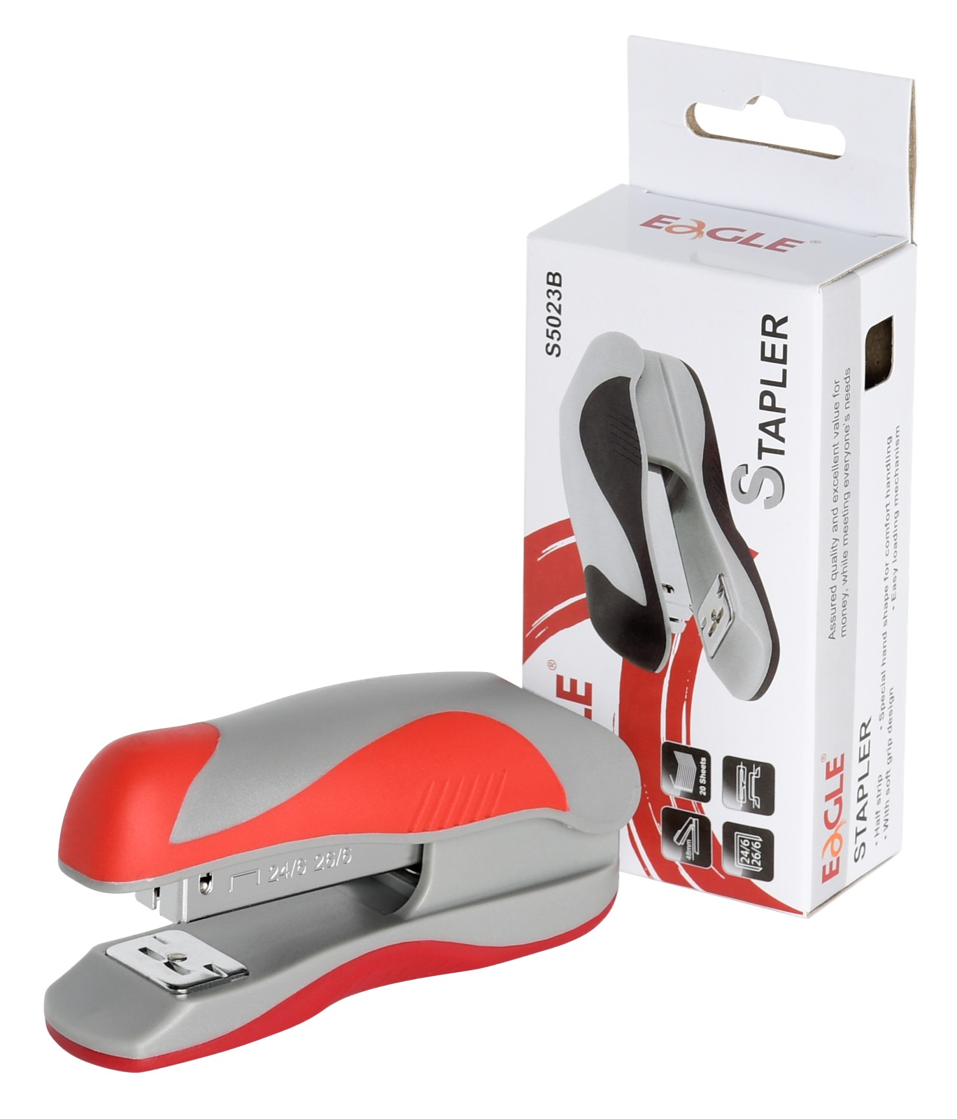 Цвет: серо-красный Материал: пластик Наличие антистеплера: Нет Регулятор глубины закладки бумаги: Нет Размер, см: 11,50 Высота, см: 5,50 Мин. партия и варианты упаковок: 1 / 12 / 120 Степлер EAGLE ALPHA №24/6 до 20 листов, пластик, серо-красный