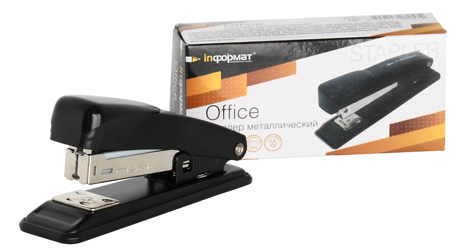 Цвет: черный Материал: металл Наличие антистеплера: Нет Регулятор глубины закладки бумаги: Нет Размер, см: 13,50 Высота, см: 5,70 Мин. партия и варианты упаковок: 1 / 12 / 120 Степлер INFORMAT Office №24/6 до 20 листов, металл, черный
