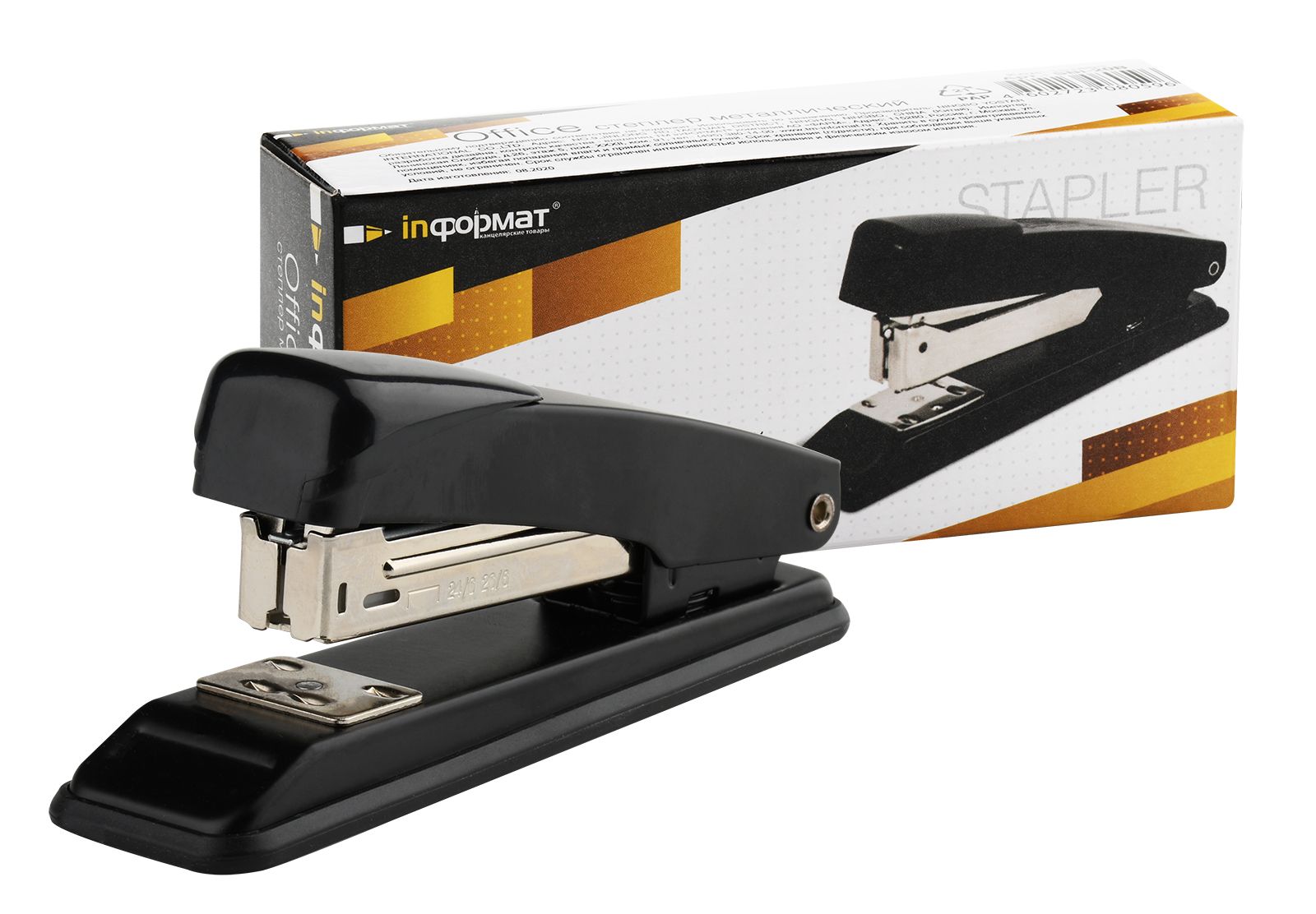 Цвет: черный Материал: металл Наличие антистеплера: Нет Регулятор глубины закладки бумаги: Нет Размер, см: 13,20 Высота, см: 6,00 Мин. партия и варианты упаковок: 1 / 12 / 72 Степлер INFORMAT Office № 24/6, 26/6 до 25 листов, металл, черный