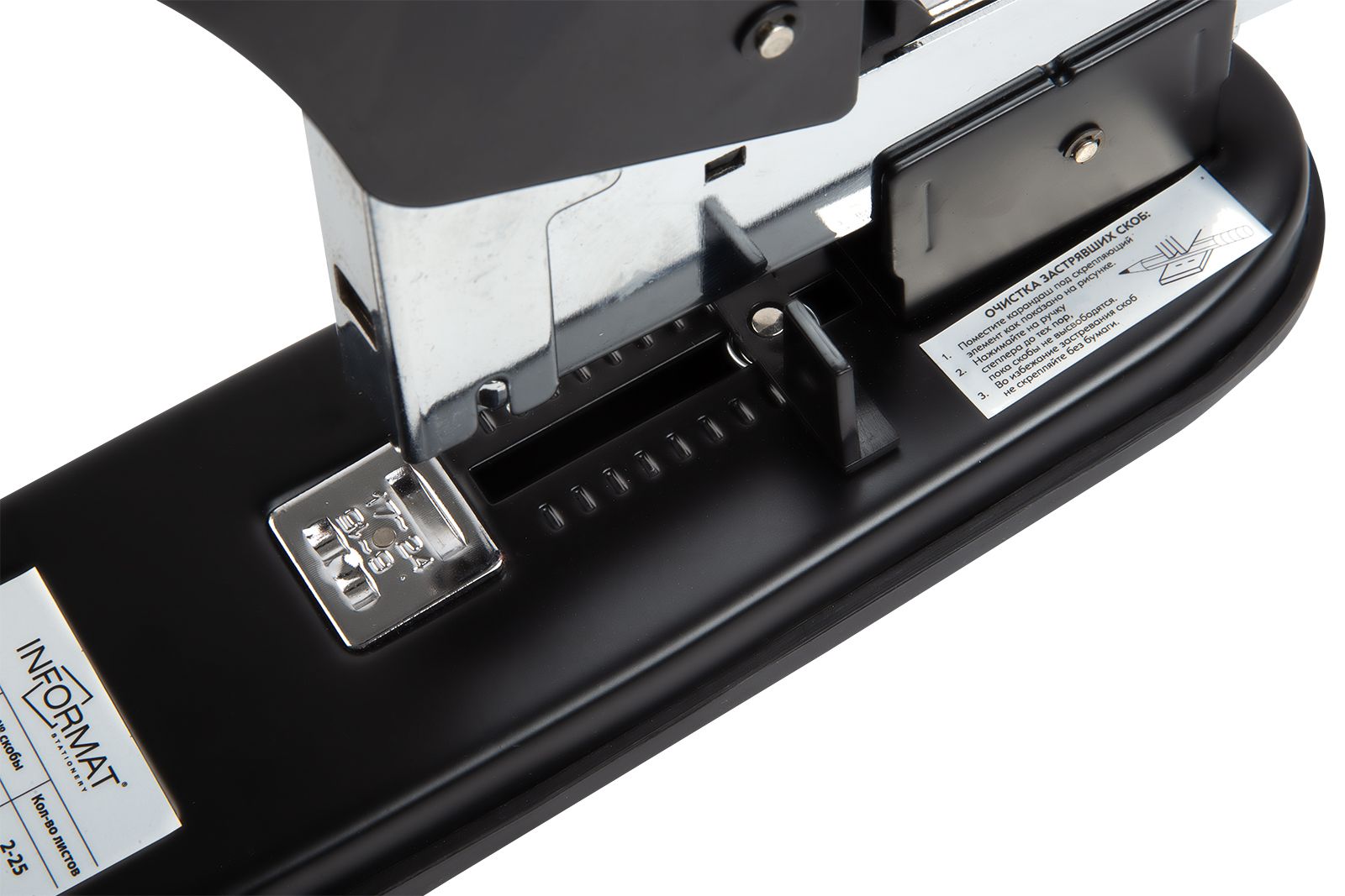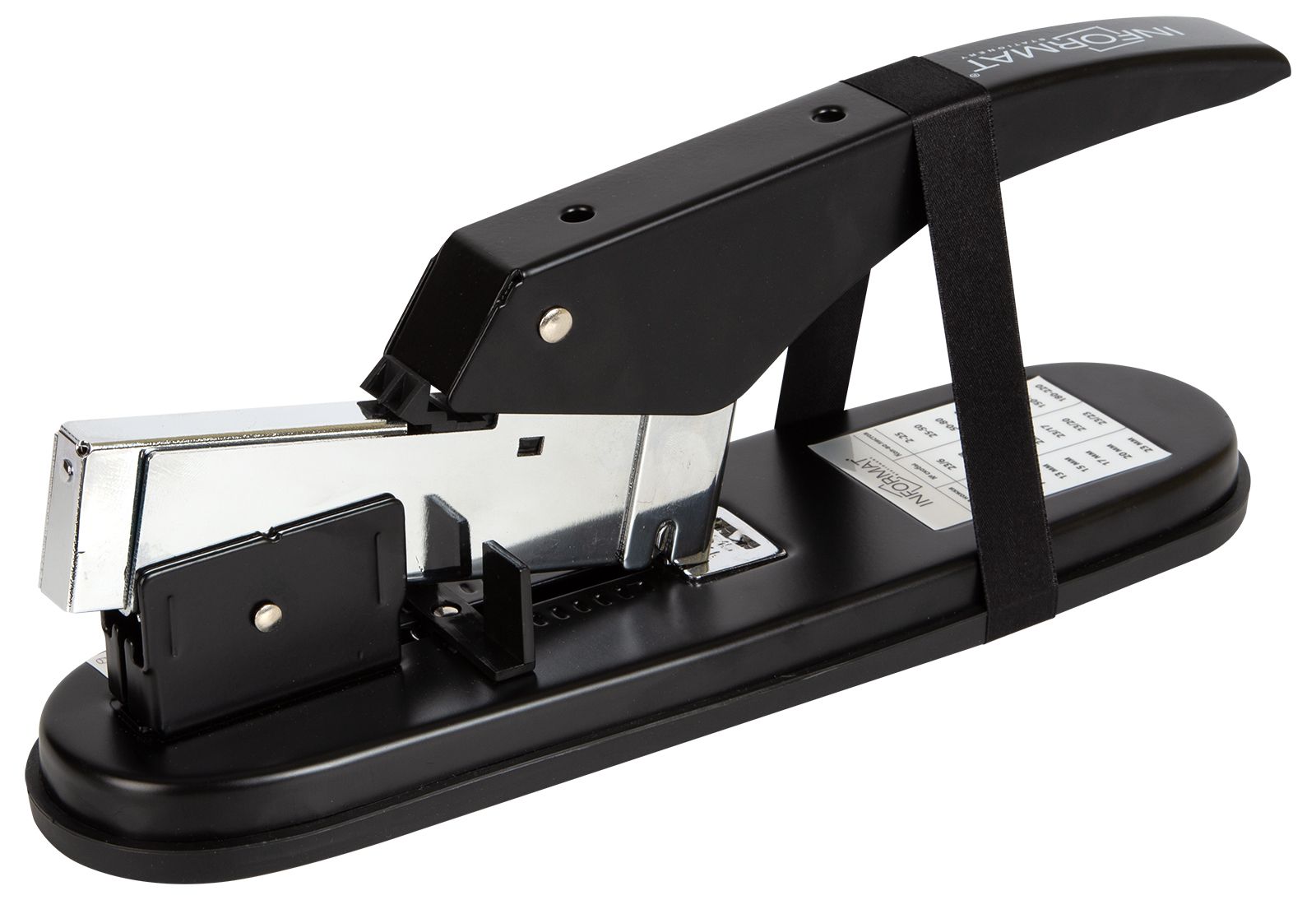 Цвет: черный Материал: металл Наличие антистеплера: Нет Регулятор глубины закладки бумаги: Да Размер, см: 29,80 Высота, см: 24,00 Мин. партия и варианты упаковок: 1 / 12 Степлер супермощный INFORMAT MAXIMUM №23/6-23 до 220 листов, металл, черный