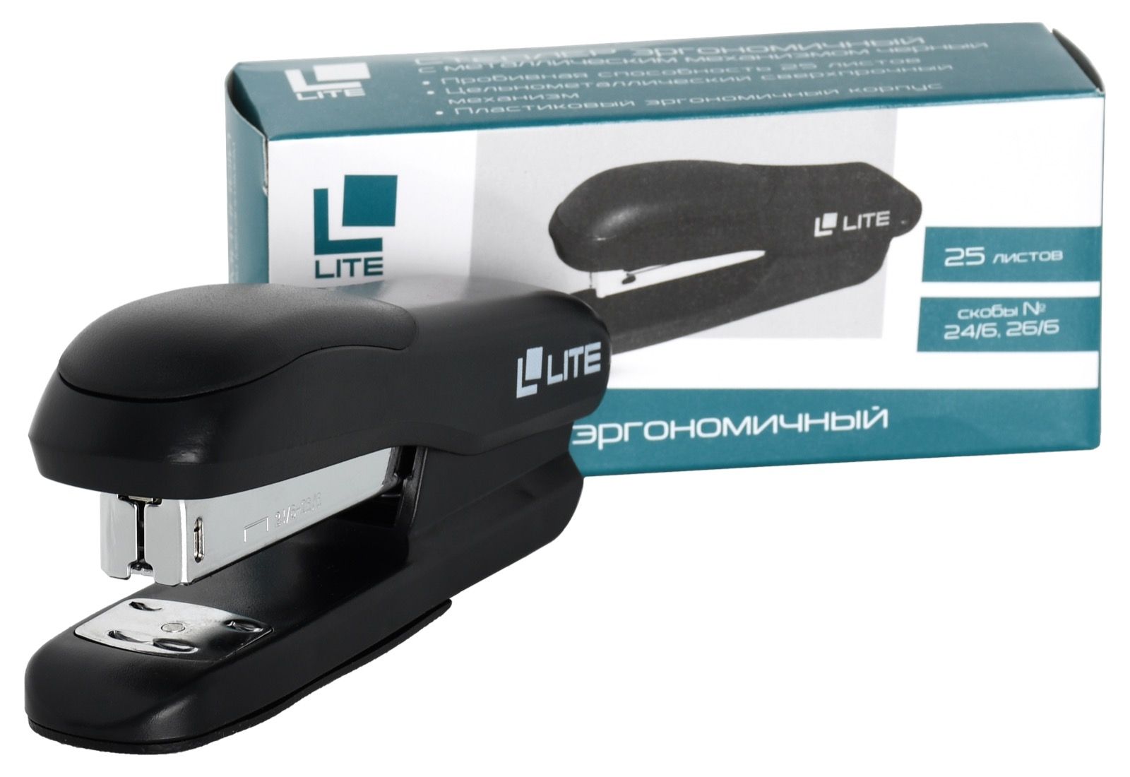 Цвет: черный Материал: пластик Наличие антистеплера: Нет Регулятор глубины закладки бумаги: Нет Размер, см: 12,50 Высота, см: 5,30 Мин. партия и варианты упаковок: 1 / 12 / 120 Степлер LITE №24/6-26/6 до 25 листов, пластик, черный