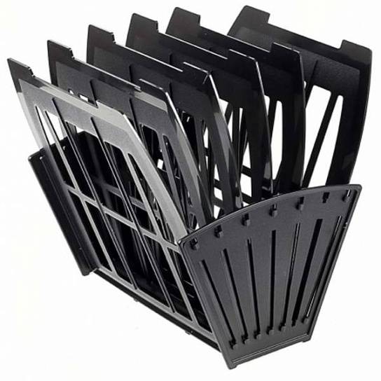 Боксы для бумаг и папок имеют эргономичную конструкцию в виде веера или пирамиды. Стандартное число отделений – два, три, пять или семь. В веерных моделях можно убрать разделители, чтобы объединить соседние секции.