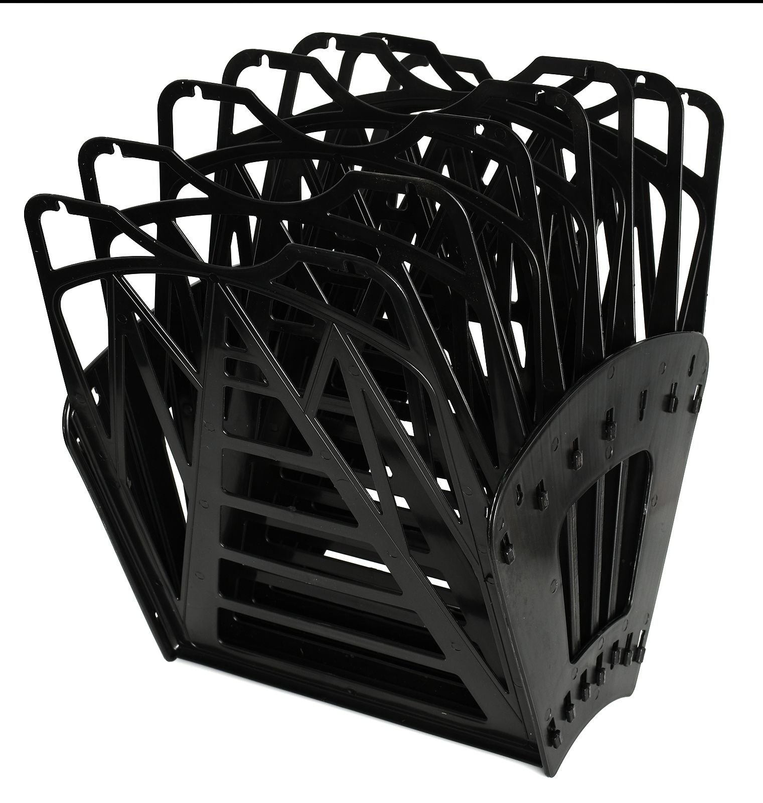 Боксы для бумаг и папок имеют эргономичную конструкцию в виде веера или пирамиды. Стандартное число отделений – два, три, пять или семь. В веерных моделях можно убрать разделители, чтобы объединить соседние секции.