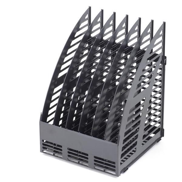 Вертикальный лоток для бумаг выполнен из пластика черного цвета. Минималистичный дизайн создаст на Вашем рабочем месте ощущение легкости. Не занимает много места. Позволяет удобно хранить документы и печатную продукцию формата А4. Имеет 4 отделения.