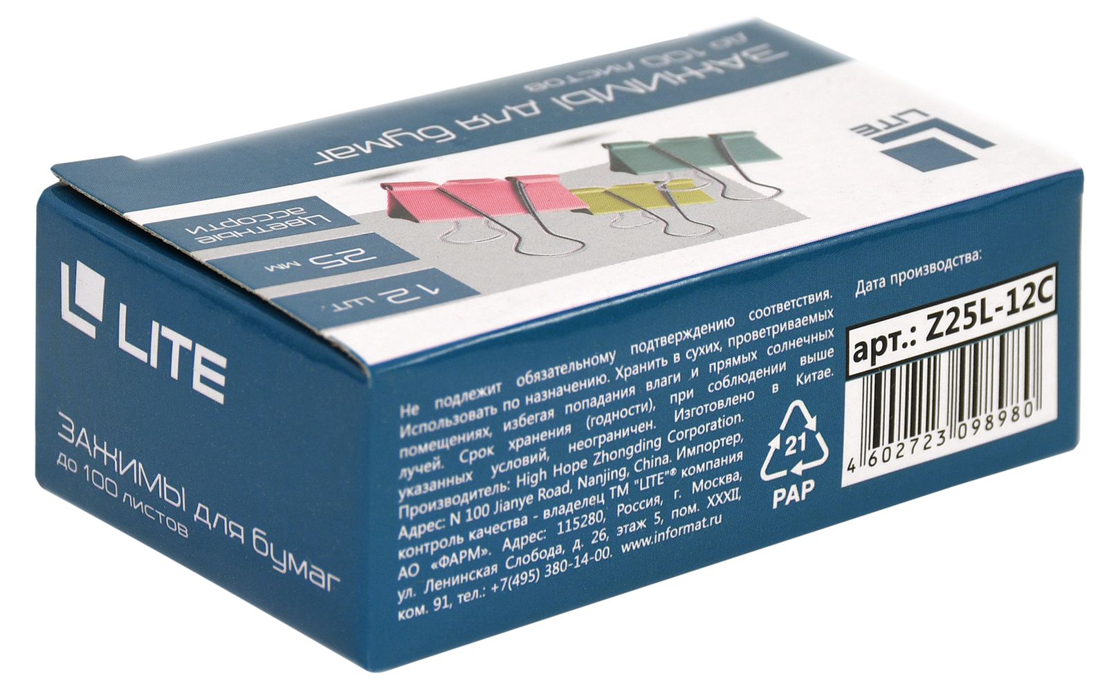 Цвет: ассорти Материал: металл Размер, мм: 25 Упаковка: картонная коробка Торговая марка: LITE Количество штук в упаковке: 12 шт/упак Мин. партия и варианты упаковок: 1 / 12 / 240 Зажимы LITE 25 мм ассорти металл 12 шт/упак