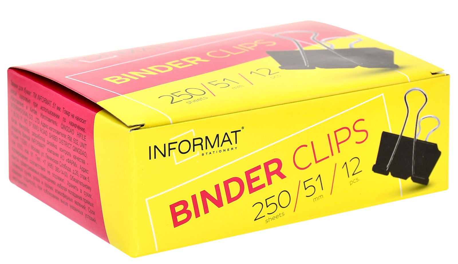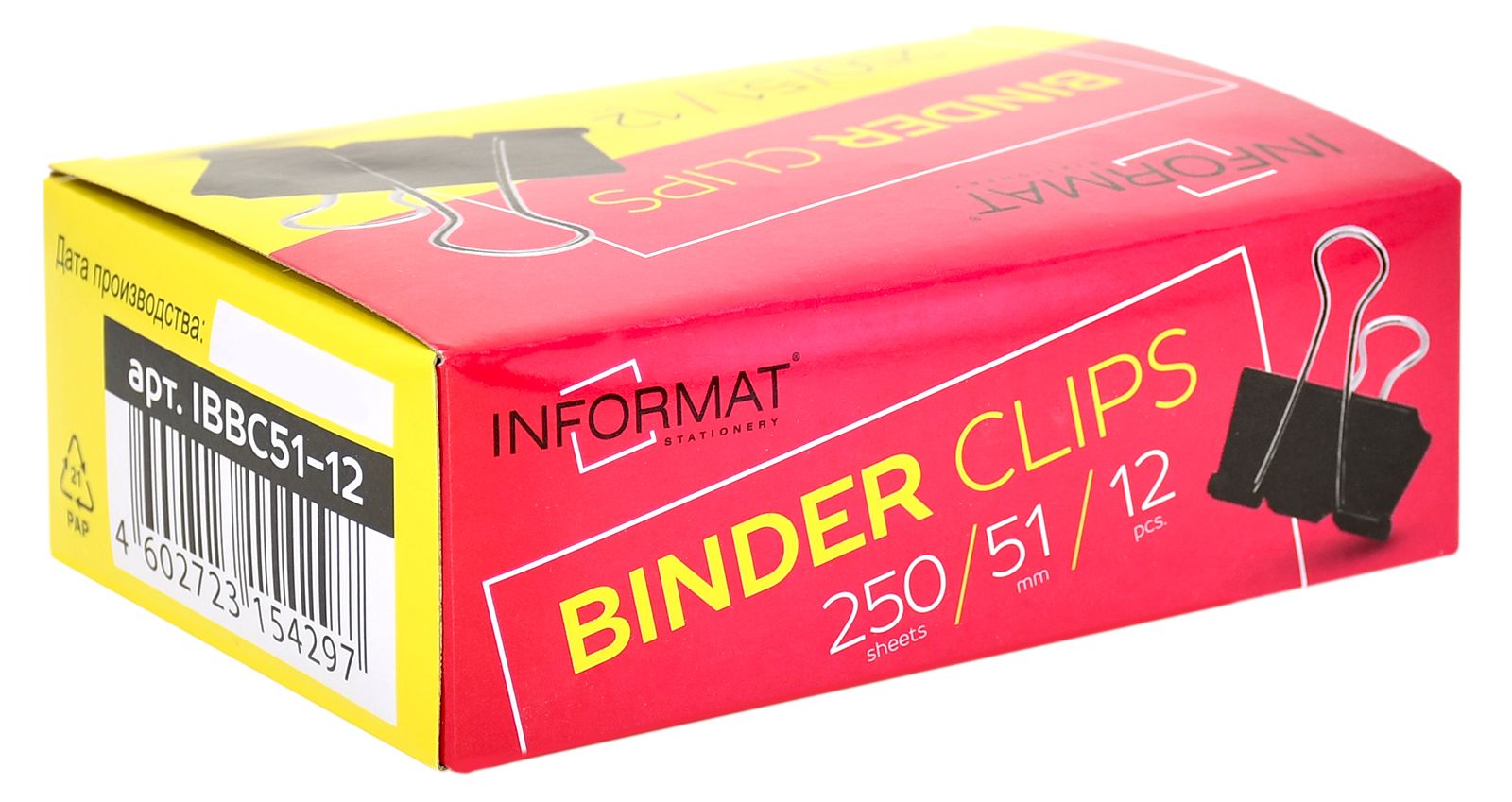Цвет: черный Материал: металл Размер, мм: 51 Упаковка: картонная коробка Торговая марка: INFORMAT Количество штук в упаковке: 12 шт/упак Мин. партия и варианты упаковок: 1 / 60 Зажимы INFORMAT 51 мм черн. металл 12 шт/упак