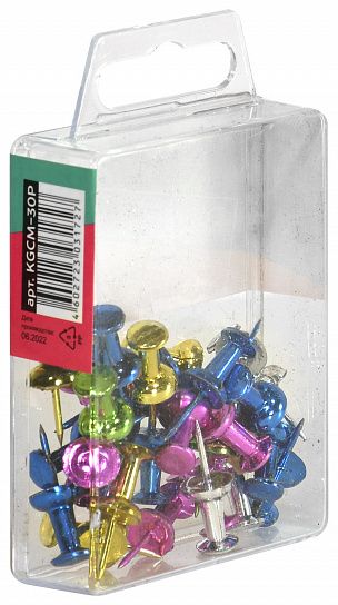 Кнопки канцелярские применяются для крепления листов с информацией к офисным пробковым доскам и другим поверхностям. Кнопки отличаются повышенной прочностью. Упакованы по 30 штук.