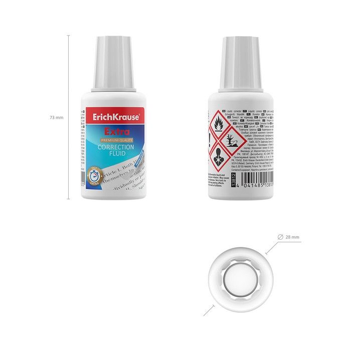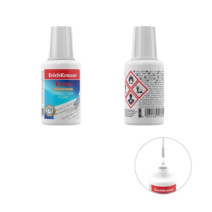 Механизм корректора: кисточка Объем, мл: 20 Упаковка: картонная коробка Основное вещество корректора (состав): растворитель Торговая марка: ErichKrause Морозоустойчивость: Да Мин. партия и варианты упаковок: 1 / 10 / 240 Корректирующая жидкость ErichKrause с кисточкой, 20 мл, на основе растворителя
