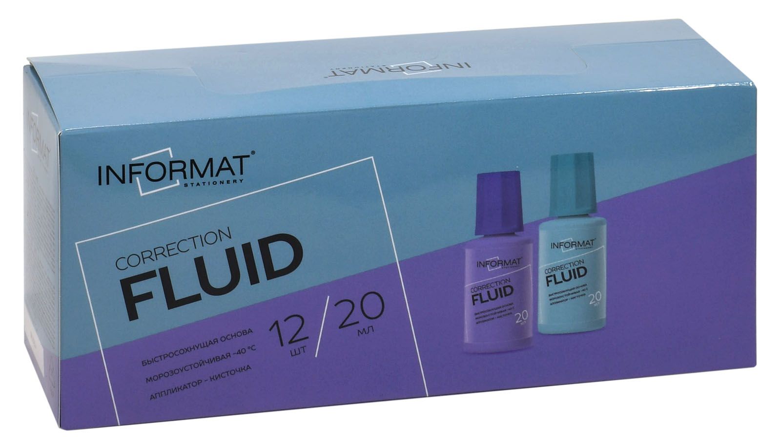 Механизм корректора: кисточка Объем, мл: 20 Упаковка: картонная коробка Основное вещество корректора (состав): растворитель Торговая марка: INFORMAT Морозоустойчивость: Да Мин. партия и варианты упаковок: 1 / 12 / 576 -