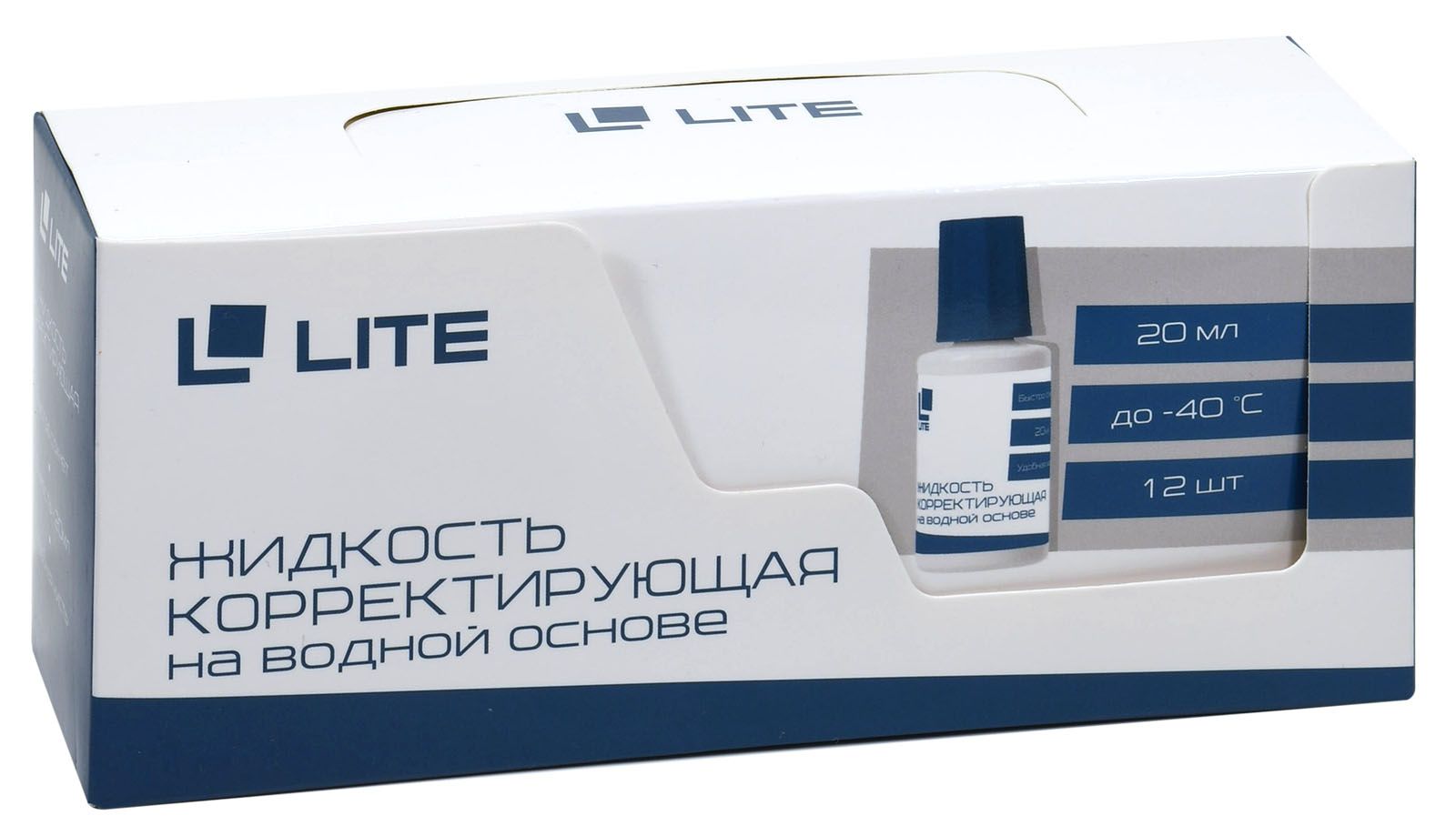 Механизм корректора: кисточка Объем, мл: 20 Упаковка: картонная коробка Основное вещество корректора (состав): водная Торговая марка: LITE Морозоустойчивость: Да Мин. партия и варианты упаковок: 1 / 12 / 576 -