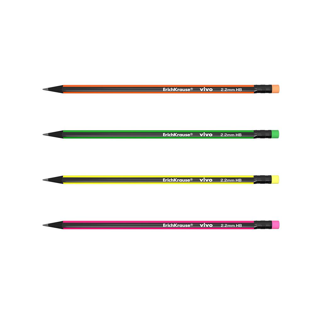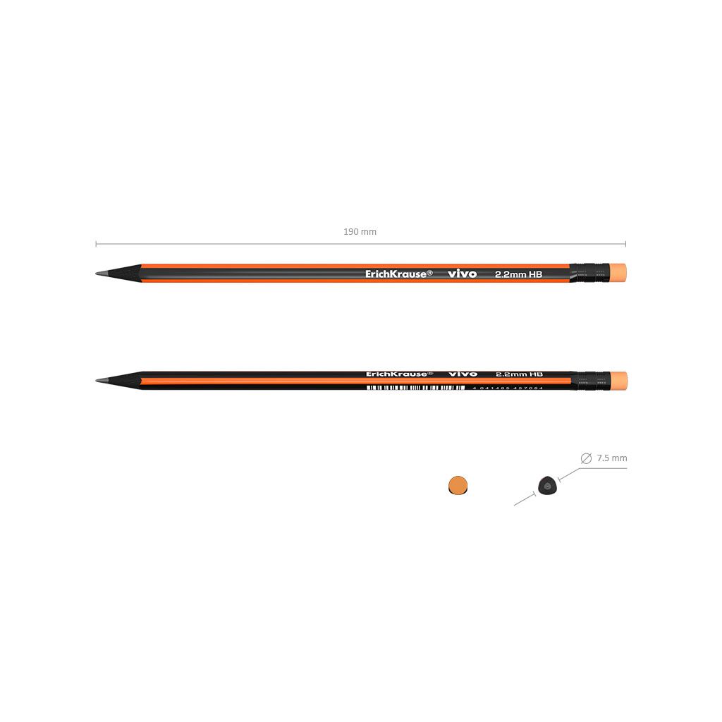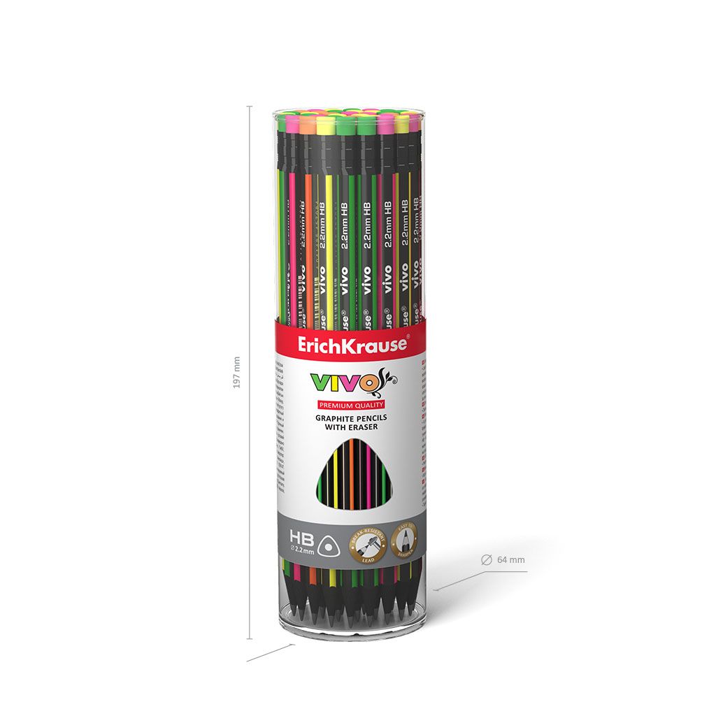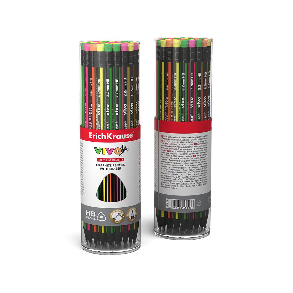 Наличие европодвеса: Нет Мягкость грифеля: НВ Цвет корпуса: ассорти Наличие индивидуального штрих-кода: Да Заточенный: Да Форма корпуса: трехгранный Мин. партия и варианты упаковок: 1 / 42 / 252 / 2016 Карандаш чернографитный деревянный ErichKrause VIVO НВ с ластиком, заточенный, трехгранный, тубус