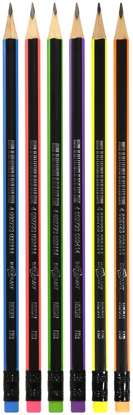 Наличие европодвеса: Нет Мягкость грифеля: НВ Цвет корпуса: ассорти Наличие индивидуального штрих-кода: Да Заточенный: Да Форма корпуса: трехгранный Мин. партия и варианты упаковок: 1 / 48 / 576 / 2304 Карандаш чернографитный деревянный INFORMAT NEON НВ с ластиком, заточенный, трехгранный, принт на корпусе, тубус