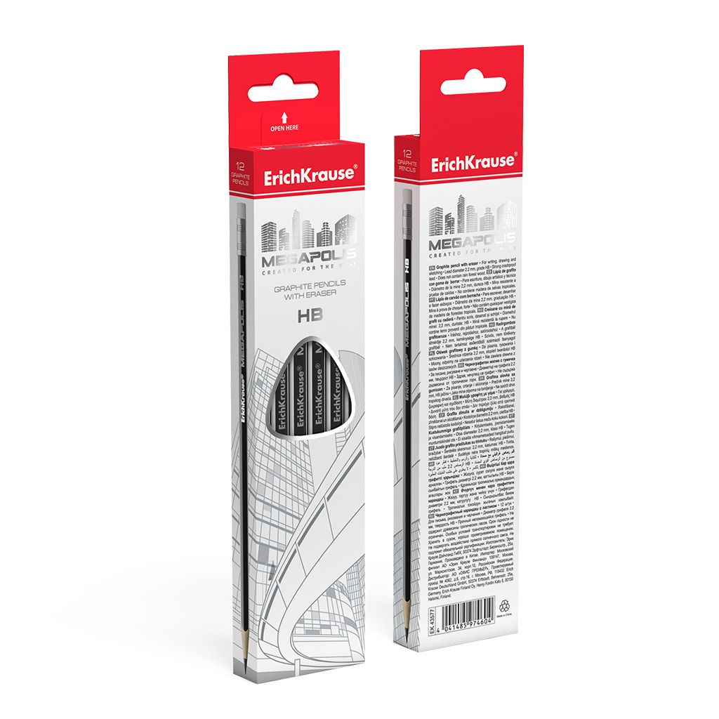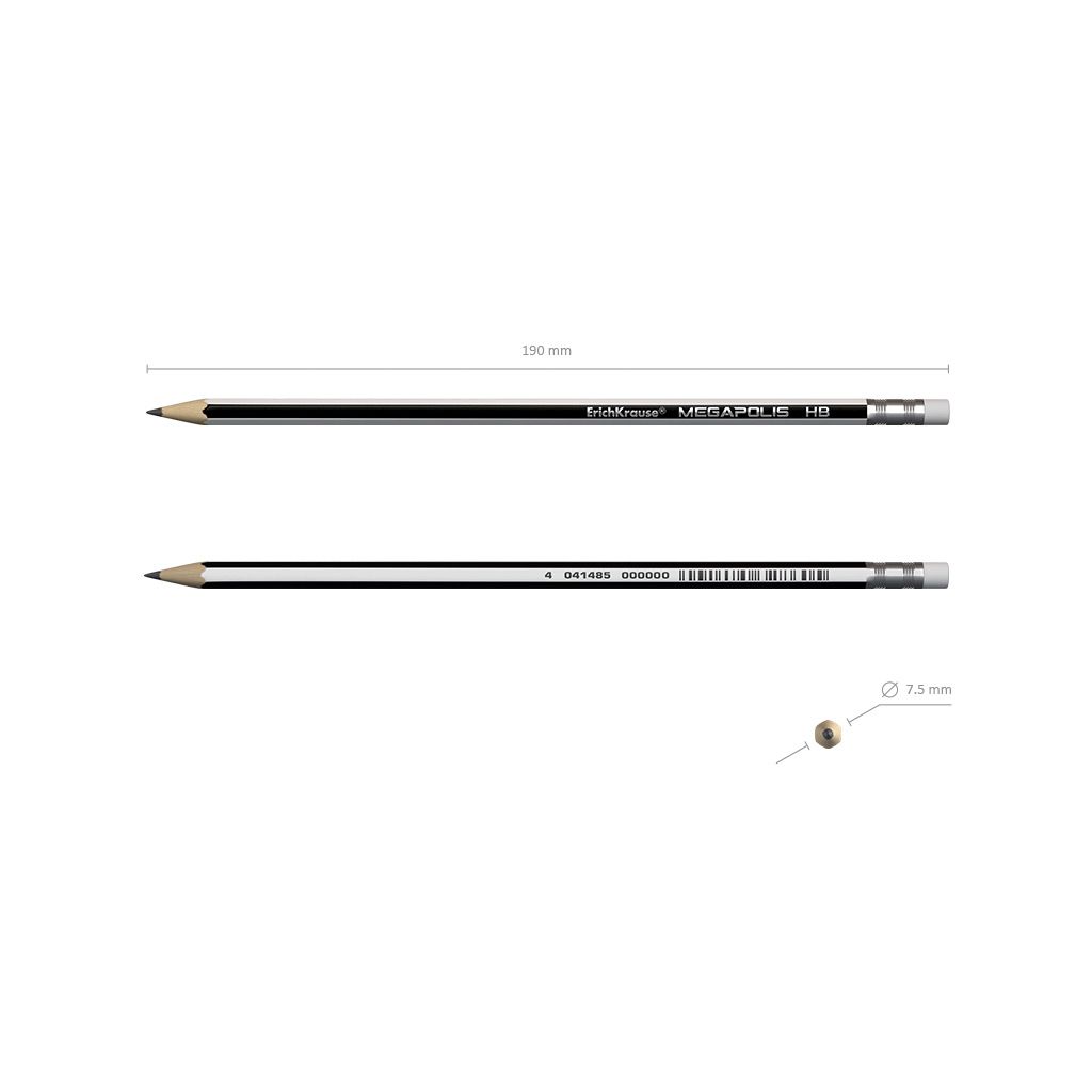 Наличие европодвеса: Да Мягкость грифеля: НВ Цвет корпуса: ассорти Наличие индивидуального штрих-кода: Да Заточенный: Да Форма корпуса: шестигранный Мин. партия и варианты упаковок: 1 / 12 / 144 / 2880 Карандаш чернографитный деревянный ErichKrause MEGAPOLIS НВ с ластиком, заточенный, шестигранный, картонная коробка