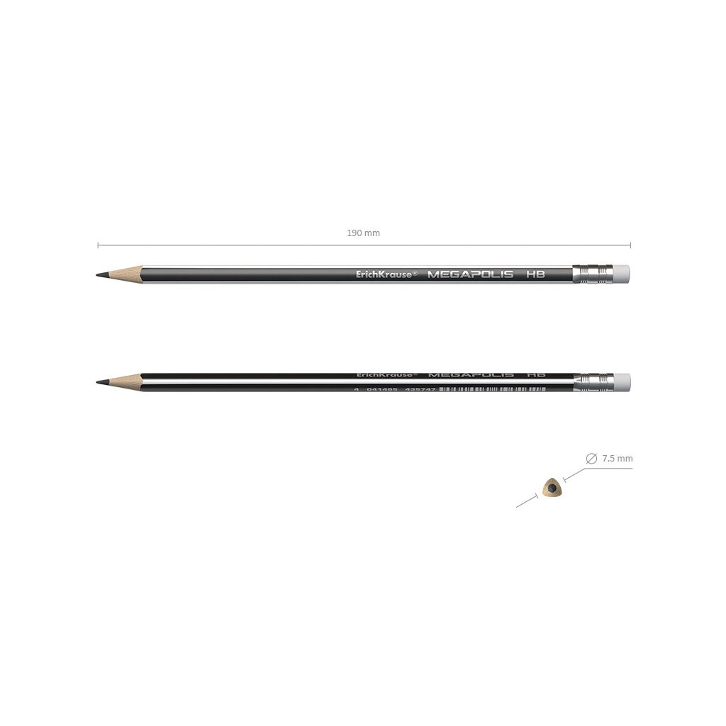 Наличие европодвеса: Да Мягкость грифеля: НВ Цвет корпуса: ассорти Наличие индивидуального штрих-кода: Да Заточенный: Да Форма корпуса: трехгранный Мин. партия и варианты упаковок: 1 / 12 / 144 / 2880 Карандаш чернографитный деревянный ErichKrause MEGAPOLIS НВ с ластиком, заточенный, трехгранный, картонная коробка