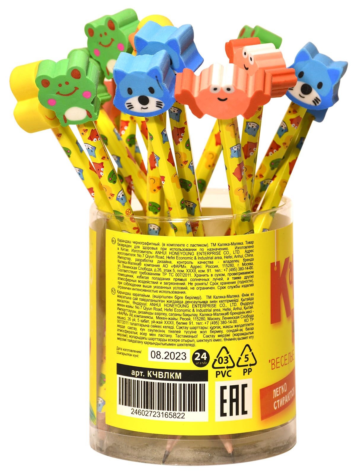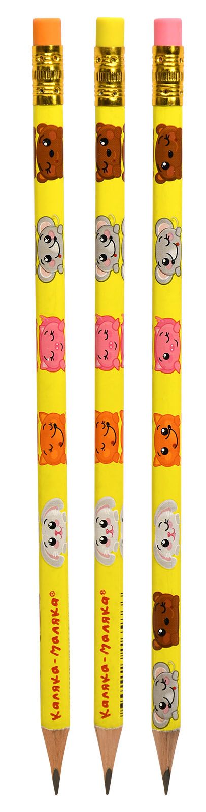 Наличие европодвеса: Нет Мягкость грифеля: НВ Цвет корпуса: желтый Наличие индивидуального штрих-кода: Да Заточенный: Да Форма корпуса: шестигранный Мин. партия и варианты упаковок: 1 / 24 / 384 Карандаш чернографитный деревянный Каляка-Маляка НВ с ластиком, заточенный, шестигранный, принт на корпусе, тубус