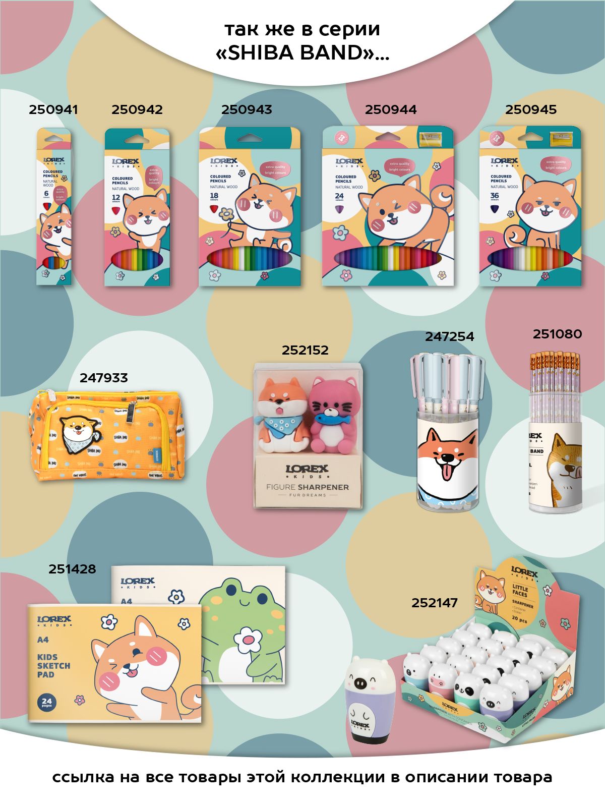 Наличие европодвеса: Нет Мягкость грифеля: НВ Цвет корпуса: дизайн Наличие индивидуального штрих-кода: Да Заточенный: Да Форма корпуса: трехгранный Мин. партия и варианты упаковок: 1 / 48 / 288 / 2304 Карандаш чернографитный деревянный LOREX KIDS V-TYPE SHIBA BAND НВ с ластиком, заточенный, трехгранный, принт на корпусе, тубус