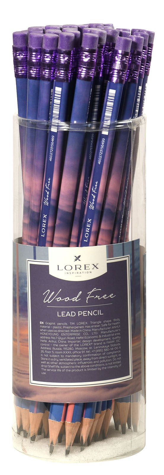 Наличие европодвеса: Нет Мягкость грифеля: НВ Цвет корпуса: дизайн Наличие индивидуального штрих-кода: Да Заточенный: Да Форма корпуса: трехгранный Мин. партия и варианты упаковок: 1 / 48 / 576 / 2304 Карандаш чернографитный пластиковый LOREX WOOD FREE FAUVISM V. 2.0 НВ с ластиком, заточенный, трехгранный, принт на корпусе, тубус