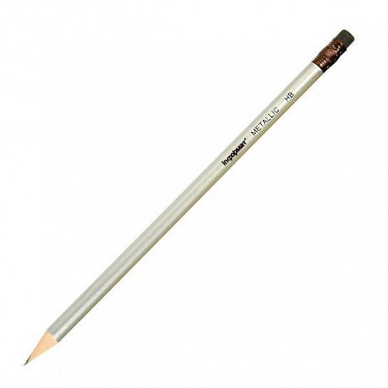 Карандаш чернографитный круглый заточенный с ластиком черного цвета. Корпус цвета металлик. Цвета корпуса: серебряный, золотой, розовый. Помимо стандартной упаковки предлагаются карандаши в удобной пластиковой тубе с цветной этикеткой. В каждой тубе размещено по 48 карандашей.
