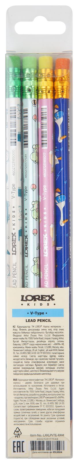 Количество в упаковке, шт: 4 Наличие европодвеса: Да Цвет корпуса: дизайн Заточенный: Да Форма корпуса: трехгранный Упаковка: пластиковая упаковка Мин. партия и варианты упаковок: 1 / 36 / 720 Набор чернографитных карандашей деревянные LOREX KIDS V-TYPE RUNAWAY 4 шт НВ с ластиком, заточенные, трехгранные, принт на корпусе, пластико