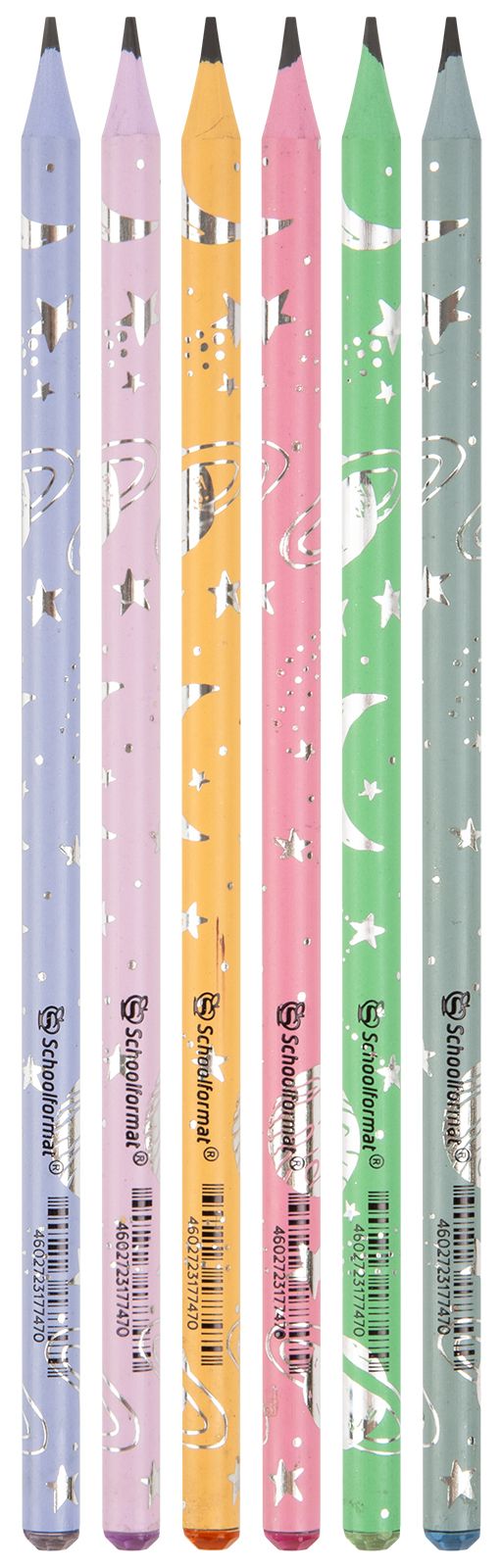 Количество в упаковке, шт: 6 Наличие европодвеса: Да Цвет корпуса: ассорти Заточенный: Да Форма корпуса: круглый Упаковка: пластиковая упаковка Мин. партия и варианты упаковок: 1 / 24 / 288 Набор чернографитных карандашей пластиковые Schoolformat МОЯ ВСЕЛЕННАЯ 6 шт HB заточенные, круглые, тонир. корпус, фольга, со стразом, пласт