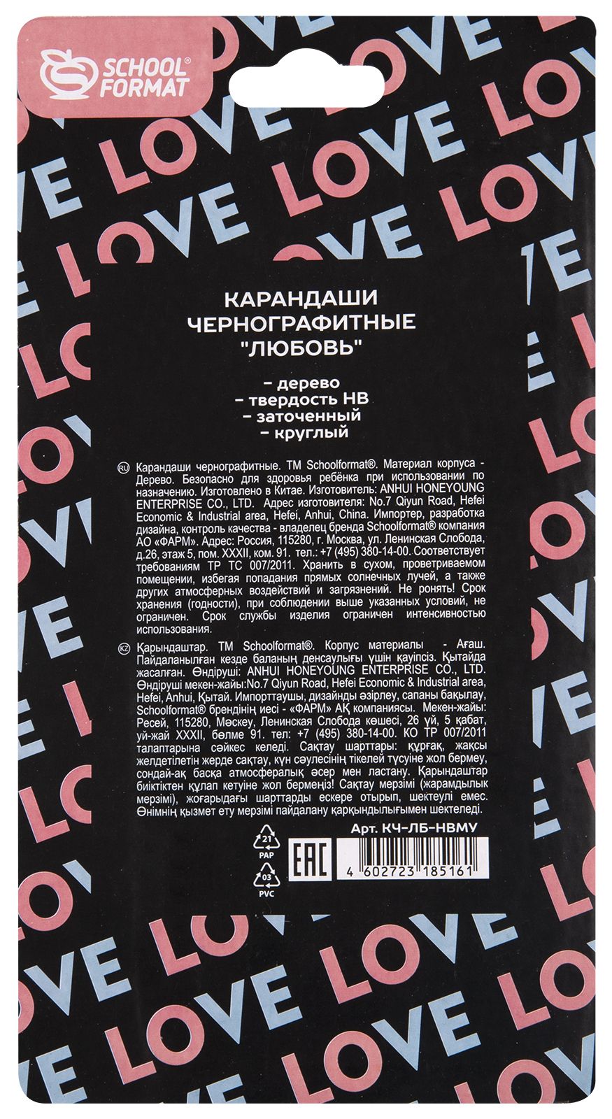 Количество в упаковке, шт: 3 Наличие европодвеса: Да Цвет корпуса: черный Заточенный: Да Форма корпуса: круглый Упаковка: блистер Мин. партия и варианты упаковок: 1 / 12 / 240 Набор чернографитных карандашей деревянные Schoolformat ЛЮБОВЬ. СЧАСТЬЕ 3 шт HB заточенные, круглые, с подвеской, блистер с европодвесом