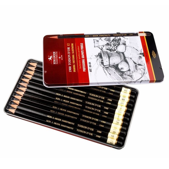 Количество в упаковке, шт: 12 Набор карандашей содержит: 8В-2Н Мин. партия и варианты упаковок: 1 / 12 Набор чернографитных карандашей Koh-I-Noor TOISON D`OR 1912 ART 12 шт 8В-2Н