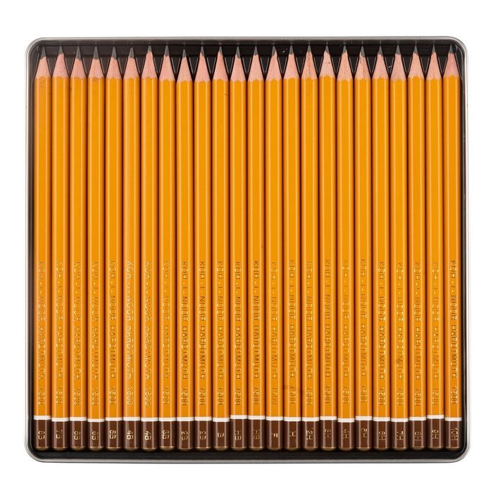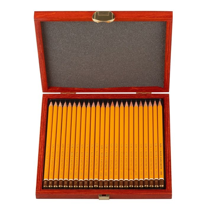 Наличие европодвеса: Нет Заточенный: Нет Форма корпуса: шестигранный Принт на корпусе: Нет Торговая марка: Koh-I-Noor Ударопрочный грифель: Нет Мин. партия и варианты упаковок: 1 Набор чернографитных карандашей деревянные Koh-I-Noor 1504 ART 24 шт 8B-2H, деревянный ящик