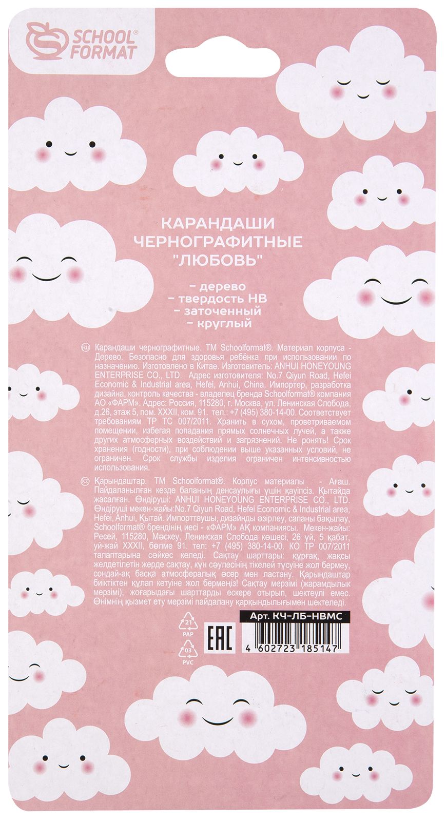 Количество в упаковке, шт: 3 Наличие европодвеса: Да Цвет корпуса: черный Заточенный: Да Форма корпуса: круглый Упаковка: блистер Мин. партия и варианты упаковок: 1 / 12 / 240 Набор чернографитных карандашей деревянные Schoolformat ЛЮБОВЬ. РОЗОВЫЙ 3 шт HB заточенные, круглые, с подвеской, блистер с европодвесом