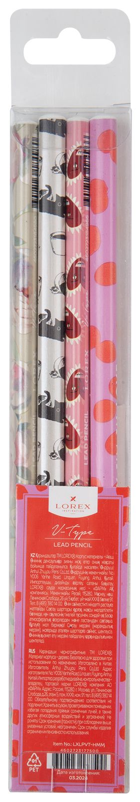 Количество в упаковке, шт: 4 Наличие европодвеса: Да Цвет корпуса: дизайн Заточенный: Да Форма корпуса: трехгранный Упаковка: пластиковая упаковка Мин. партия и варианты упаковок: 1 / 36 / 720 Набор чернографитных карандашей деревянные LOREX V-TYPE HARMONY 4 шт НВ заточенные, трехгранные, принт на корпусе, пластиковая упаковка