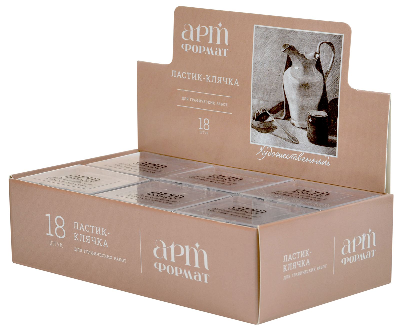 Цвет: ассорти Размер: 40х36х10 мм Наличие европодвеса: Нет Упаковка: дисплей Вид чертежных принадлежностей: Ластик-клячка Материал: термопластичная резина Мин. партия и варианты упаковок: 1 / 18 / 864 Ластик-клячка АРТформат, термопластичная резина, 40х36х10 мм прямоугольный, ассорти, супермягкий, индивидуальный ШК