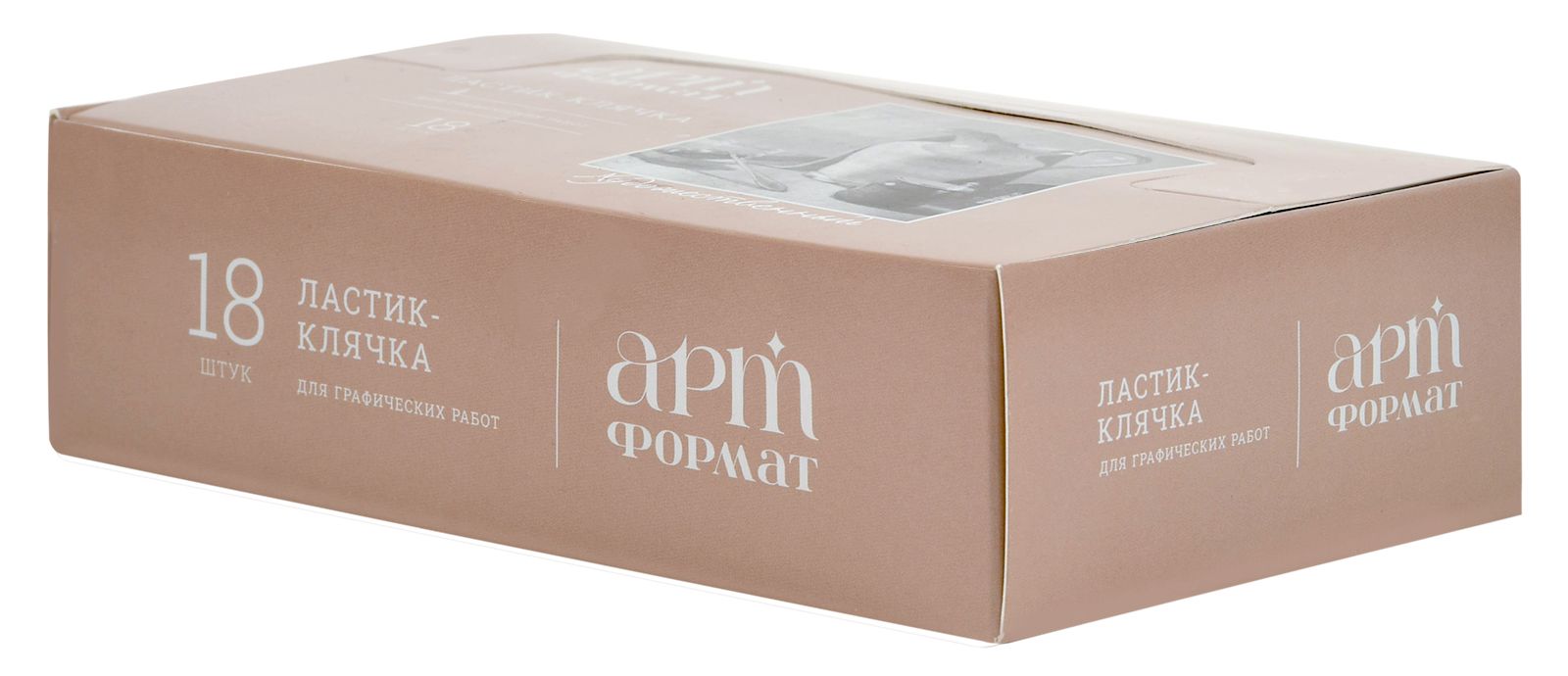Цвет: ассорти Размер: 40х36х10 мм Наличие европодвеса: Нет Упаковка: дисплей Вид чертежных принадлежностей: Ластик-клячка Материал: термопластичная резина Мин. партия и варианты упаковок: 1 / 18 / 864 Ластик-клячка АРТформат, термопластичная резина, 40х36х10 мм прямоугольный, ассорти, супермягкий, индивидуальный ШК