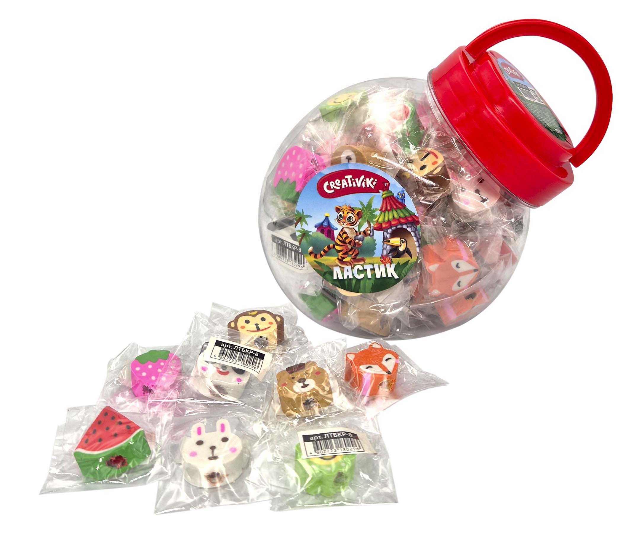 Цвет: ассорти Размер: 25х25х12 мм Наличие европодвеса: Нет Упаковка: банка Вид чертежных принадлежностей: Ластик-топпер Материал: термопластичная резина Мин. партия и варианты упаковок: 1 / 60 / 2400 Ластик-топпер Creativiki, термопластичная резина, 25х25х12 мм фигурный, ассорти, мягкий, индивидуальный ШК