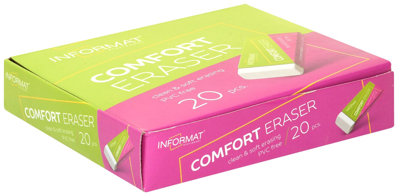 Ластик изготовлен из качественного материала, который не повреждает бумагу и не оставляет следов при стирании. Мягко и эффективно удаляет следы от графитовых и цветных карандашей. Поставляется в индивидуальной упаковке из картона и пленки.