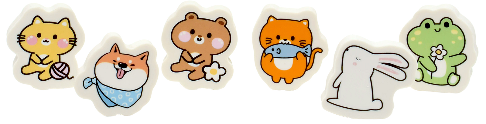 Компактные и удобные, они без труда стирают, не оставляя следов. Творческий процесс с такими ластиками станет еще увлекательнее!Ассорти из 6 дизайнов представлено в красочном пакете со стикером.