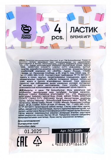 Ассорти из 4-х цветов упакованы в прозрачный пакет с европодвесом, который удобно хранить в пенале и рюкзаке.