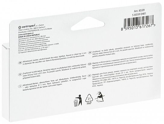 Набор маркеров CENTROPEN используется для письма на белых стираемых досках. Эргономичный корпус обеспечивает удобный захват маркера и комфортное письмо. Специальный состав чернил на спиртовой основе практически не имеет запаха, чернила быстро высыхают и обладают высокой светостойкостью.