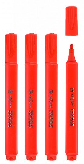 Простой и надежный маркер TRIANGLE для повседневного использования. Водостойкие чернила. Спиртовая основа. Прекрасно пишет на любых видах материалов: бумаге, картоне, дереве, металле, пластмассе, стекле, керамике. Пишущий узел 4 мм устойчив к деформации.