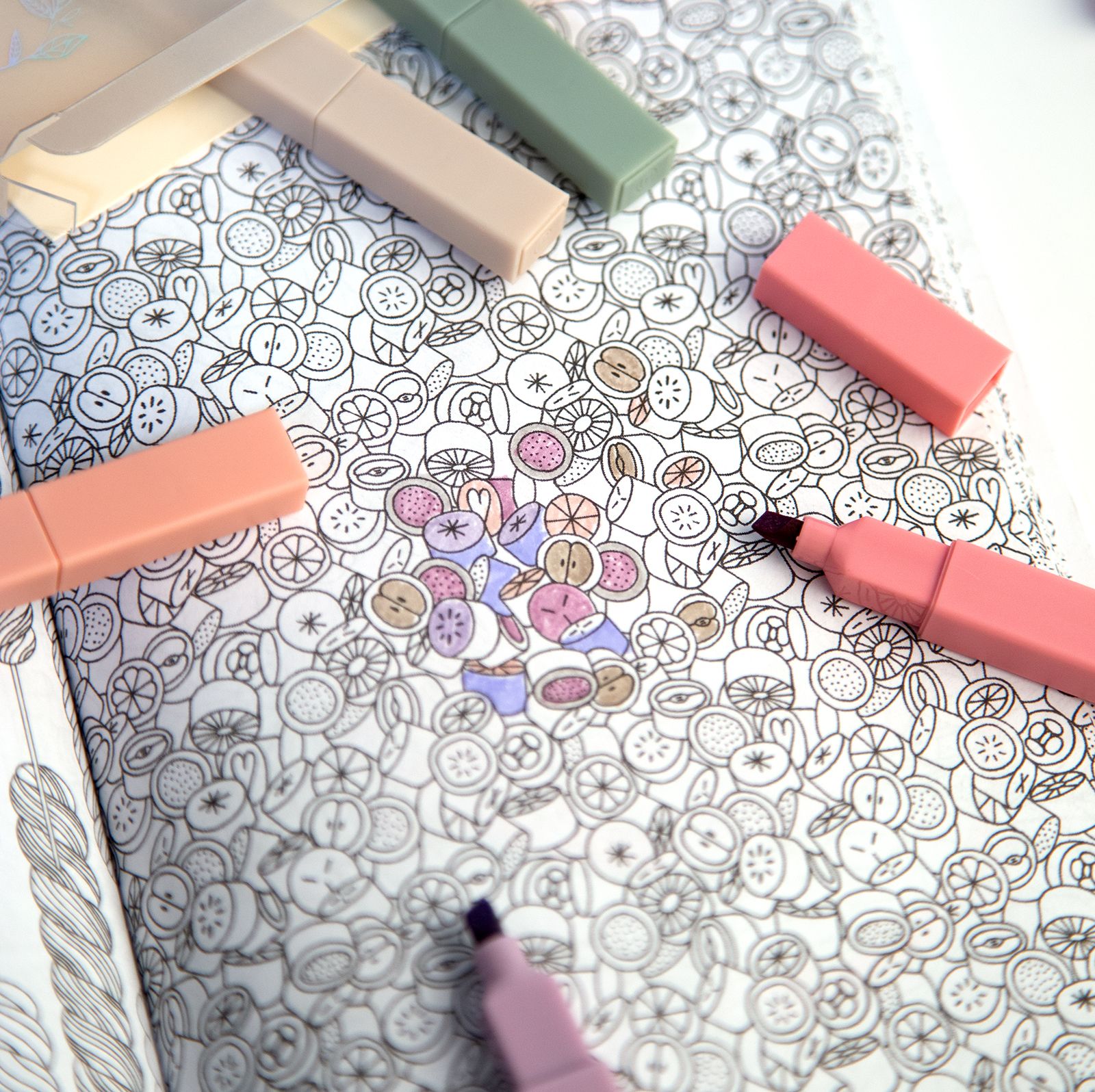 - Палитра оттенков включает желтый, салатный, розовый, голубой, оранжевый и другие яркие цвета.