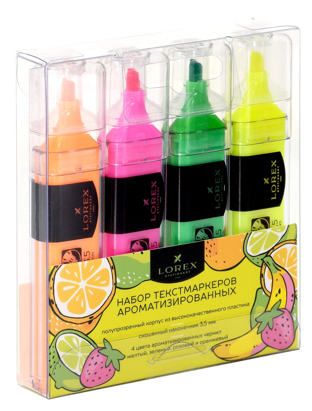 Цвет: ассорти Количество в упаковке, шт: 4 Характеристика цвета: неон Тип чернил: быстросохнущий Форма наконечника: скошенный Вид маркера: Набор текстовых маркеров Мин. партия и варианты упаковок: 1 / 18 / 216 Набор текстовых маркеров LOREX Aromatic RICH FRUIT.NEON 1—3,5 мм, скошенный, 4 цвета