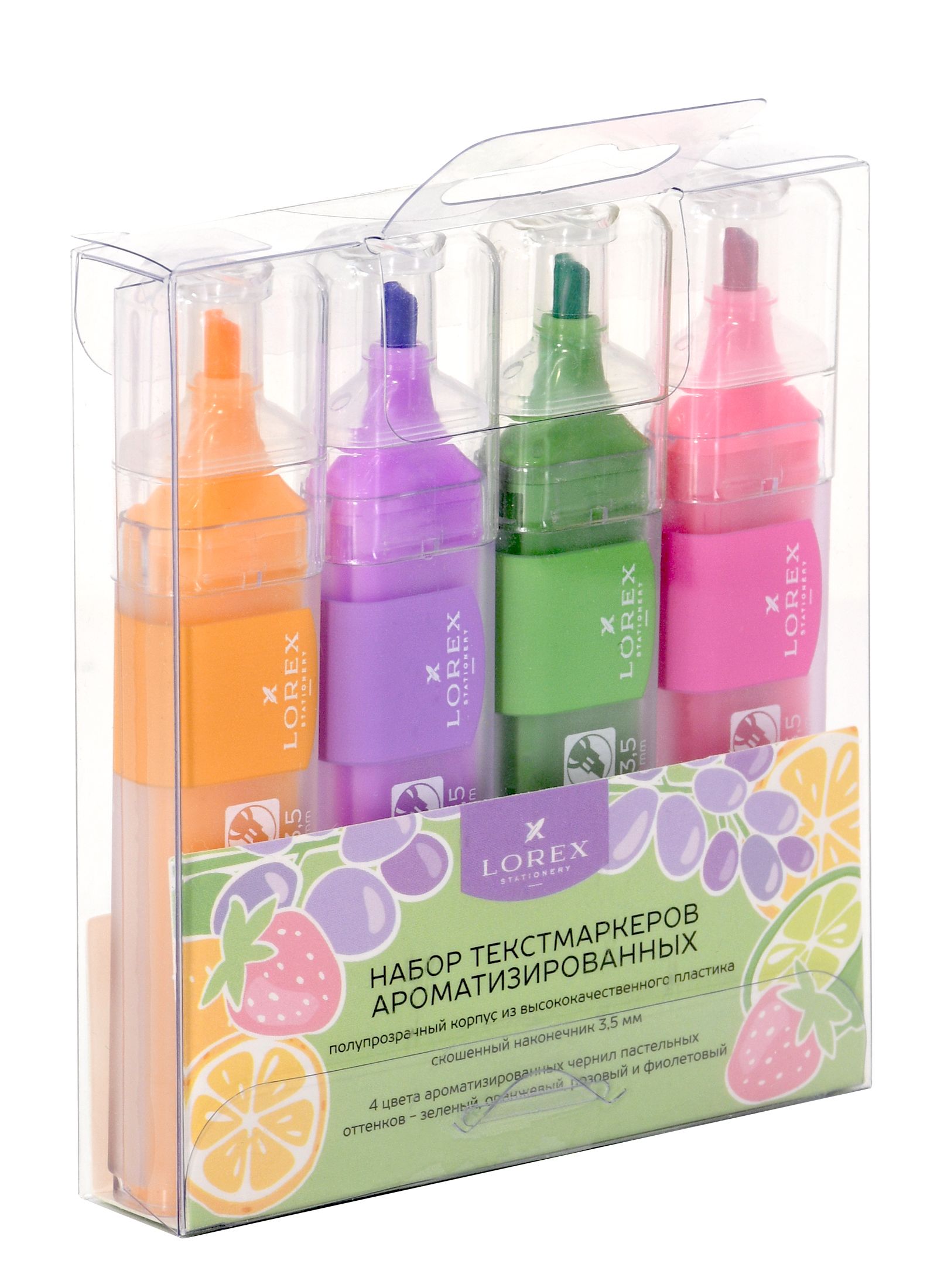 Цвет: ассорти Количество в упаковке, шт: 4 Характеристика цвета: пастель Тип чернил: быстросохнущий Форма наконечника: скошенный Вид маркера: Набор текстовых маркеров Мин. партия и варианты упаковок: 1 / 18 / 216 Набор текстовых маркеров LOREX Aromatic RICH FRUIT.PASTEL 1—3,5 мм, скошенный, 4 цвета